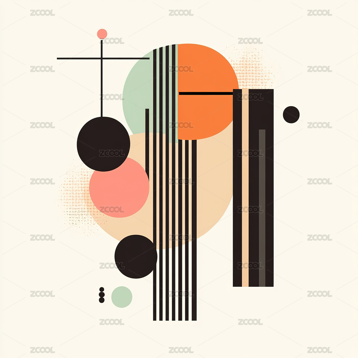 橘绿黑包豪斯风格抽象几何设计海报背景