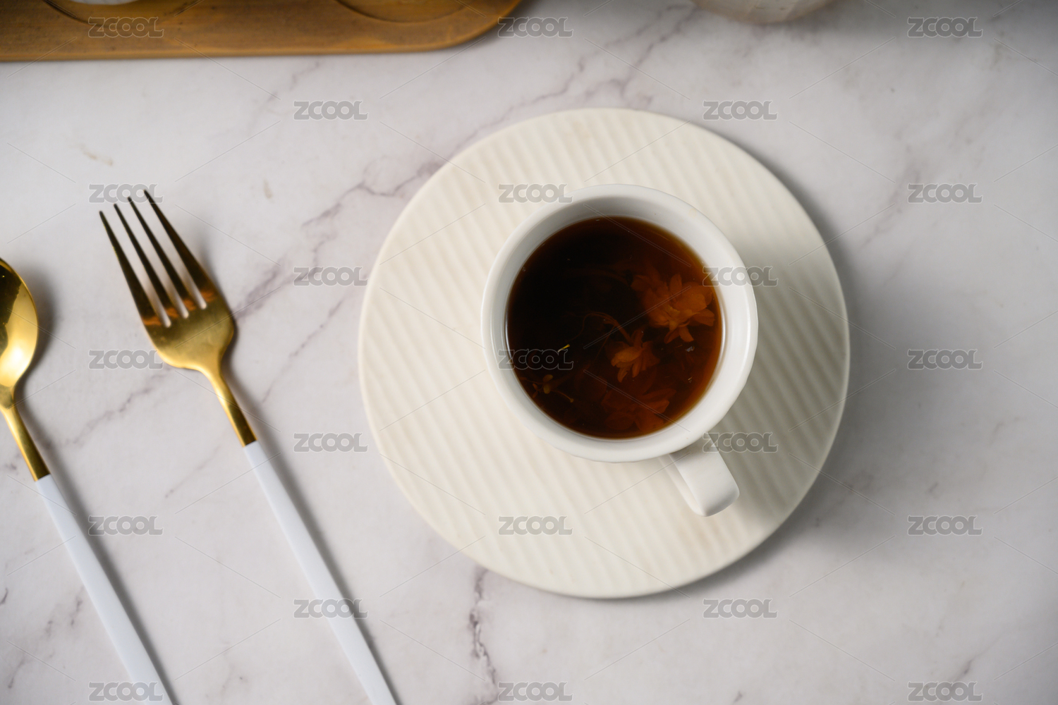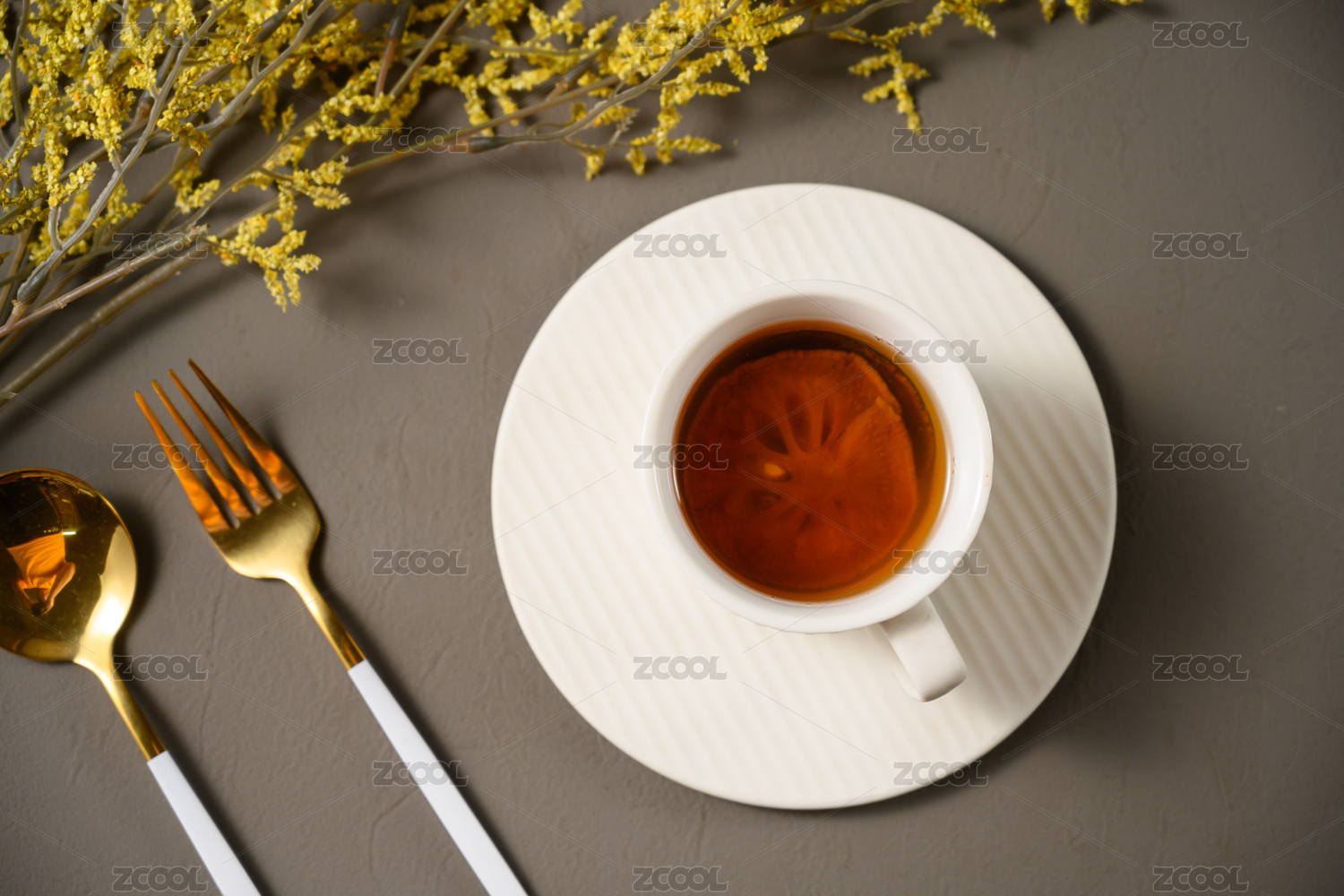 桌面上的盘子里的甘甜可口的山楂叶茶