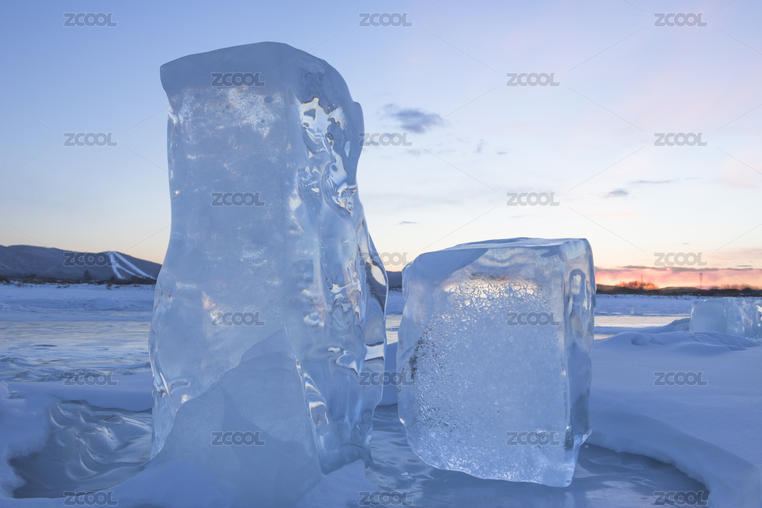 中国内蒙古自治区大兴安岭加格达奇区甘河上的冰块