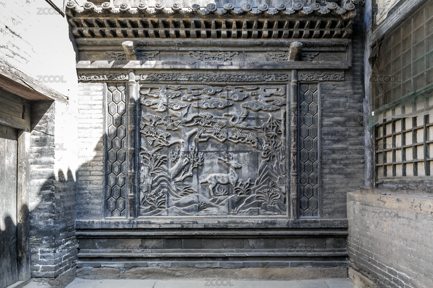 山西省太谷县三多堂四合院仙鹤梅花鹿砖雕墙