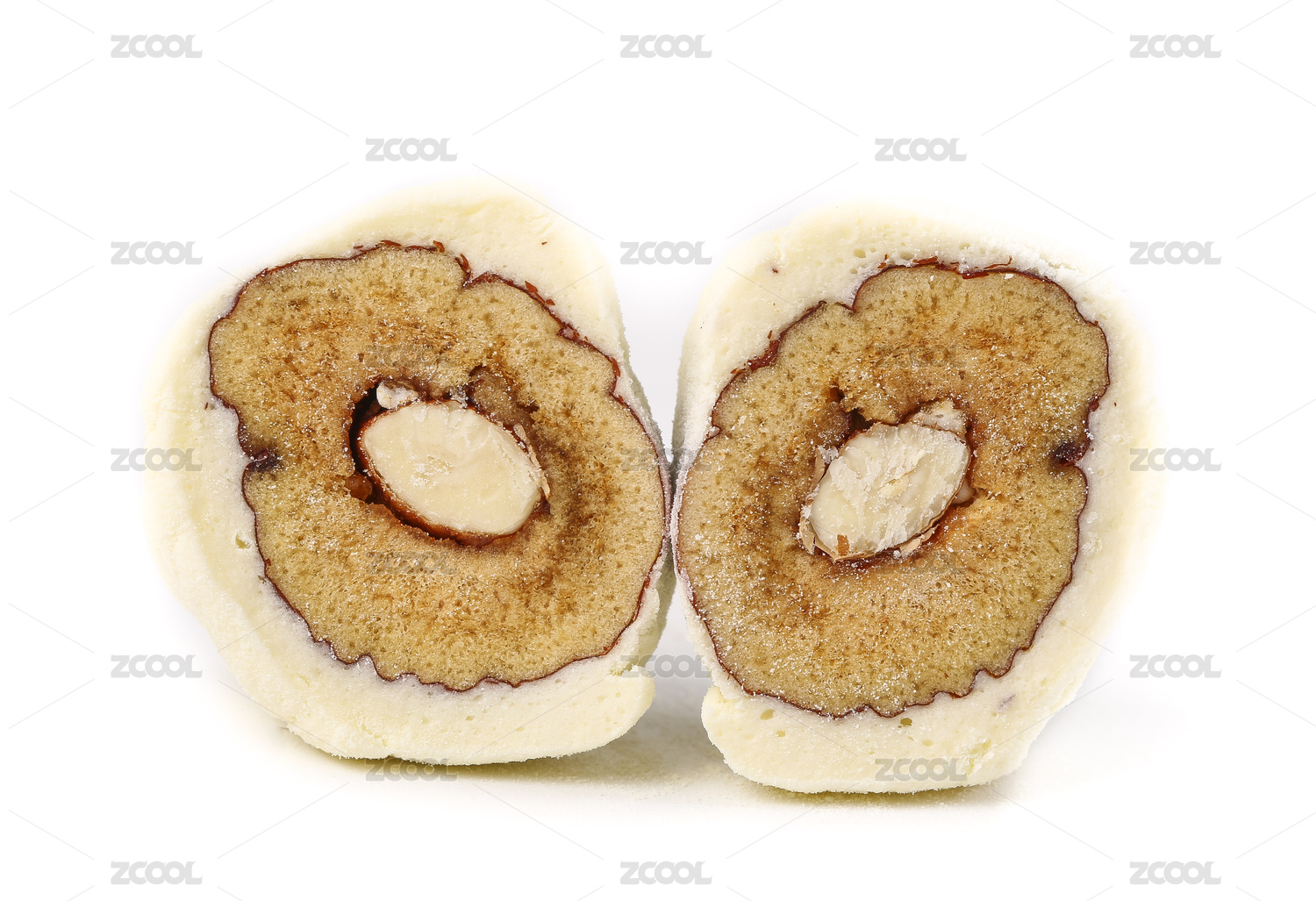 白底上放着一颗奶酪枣和半边夹心奶枣