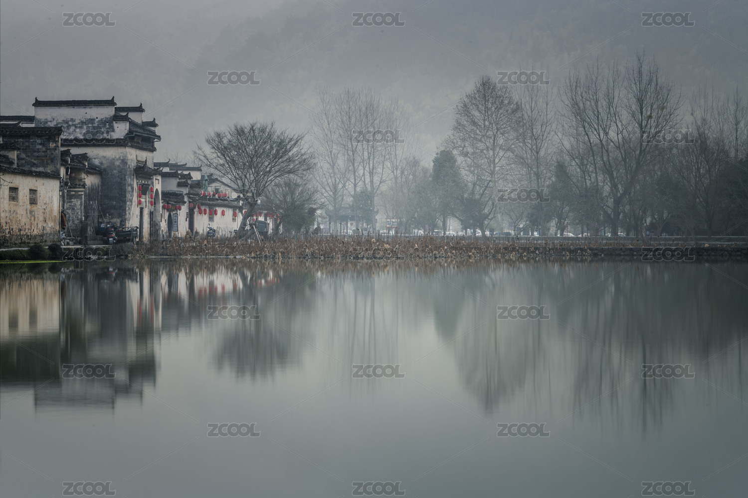中国,安徽,黄山市,黟县,宏村,南湖,月沼,冬季,雪,冬天