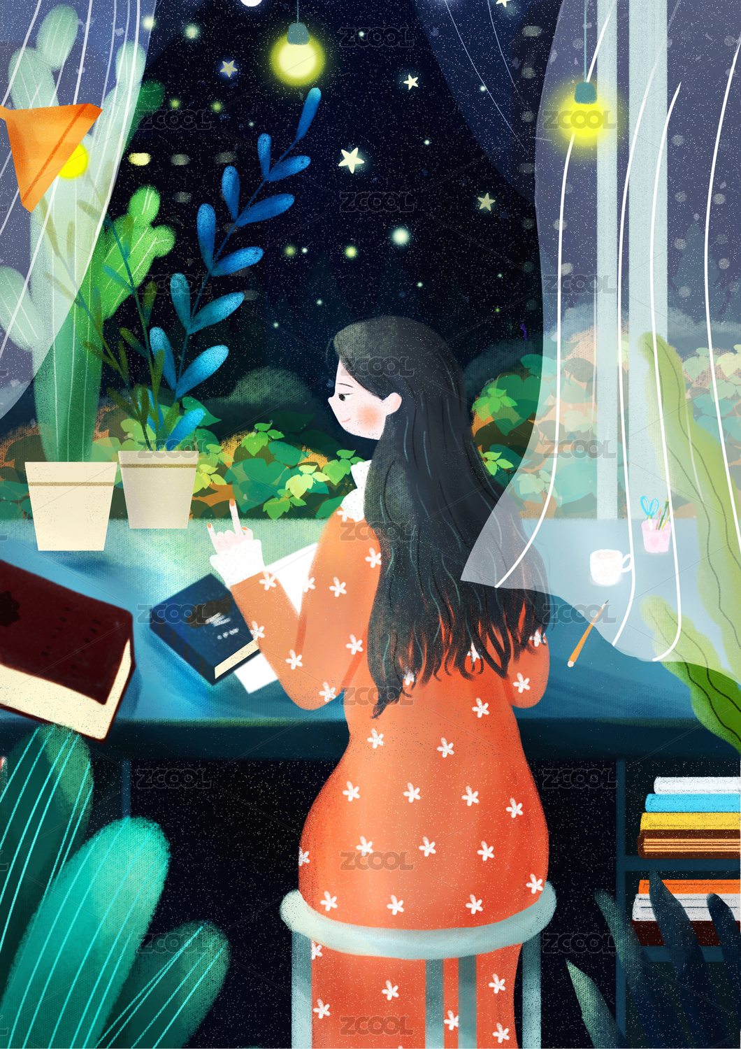 魔法少女看书儿童绘本插画
