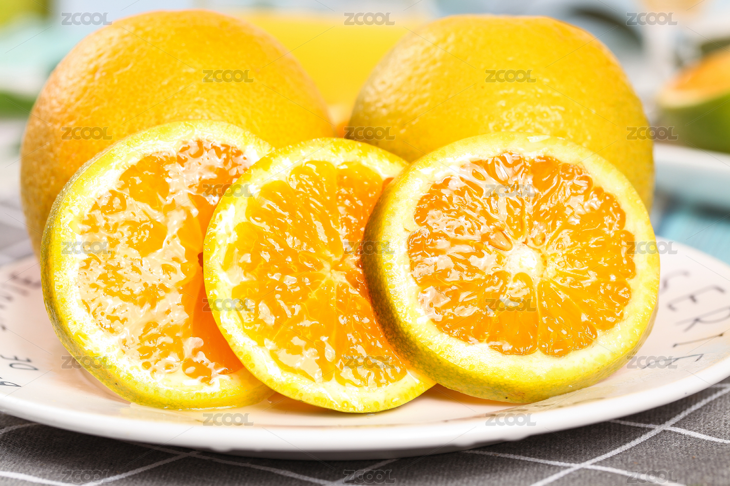 盘子里装着夏橙和夏橙果肉