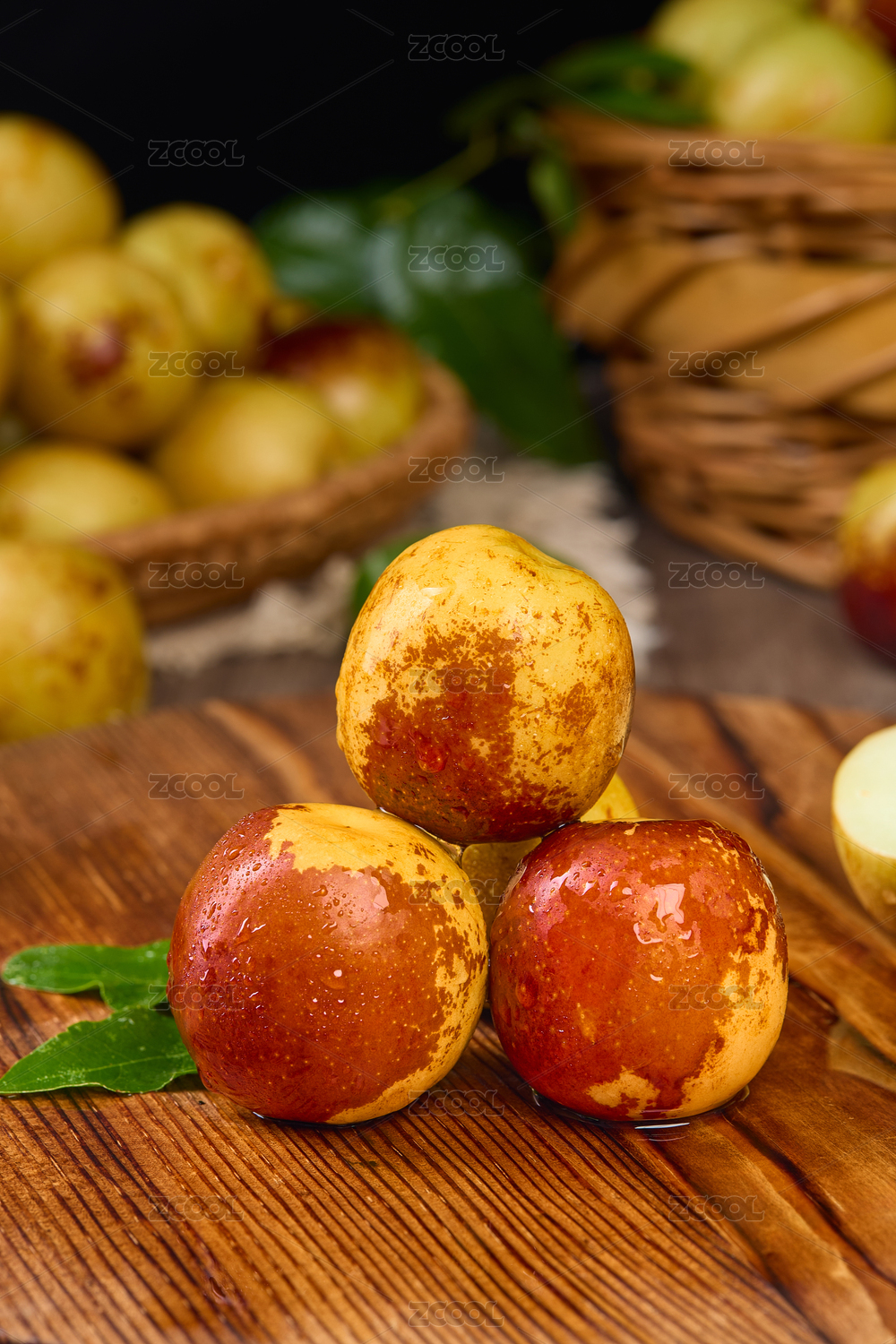 黑底上放着切面冬枣