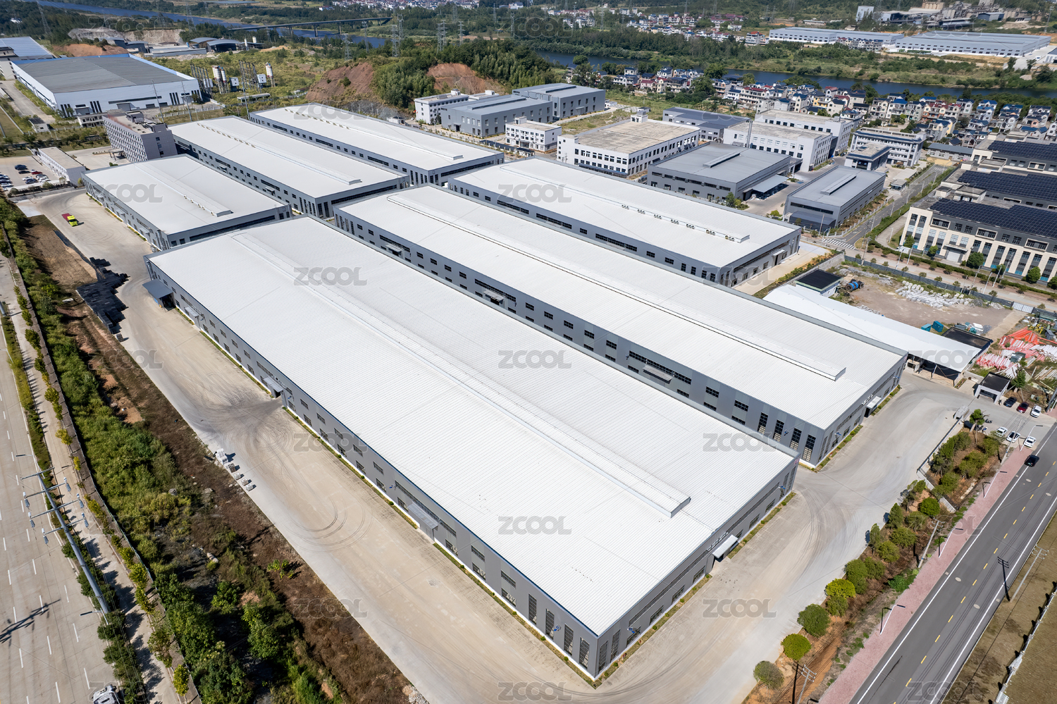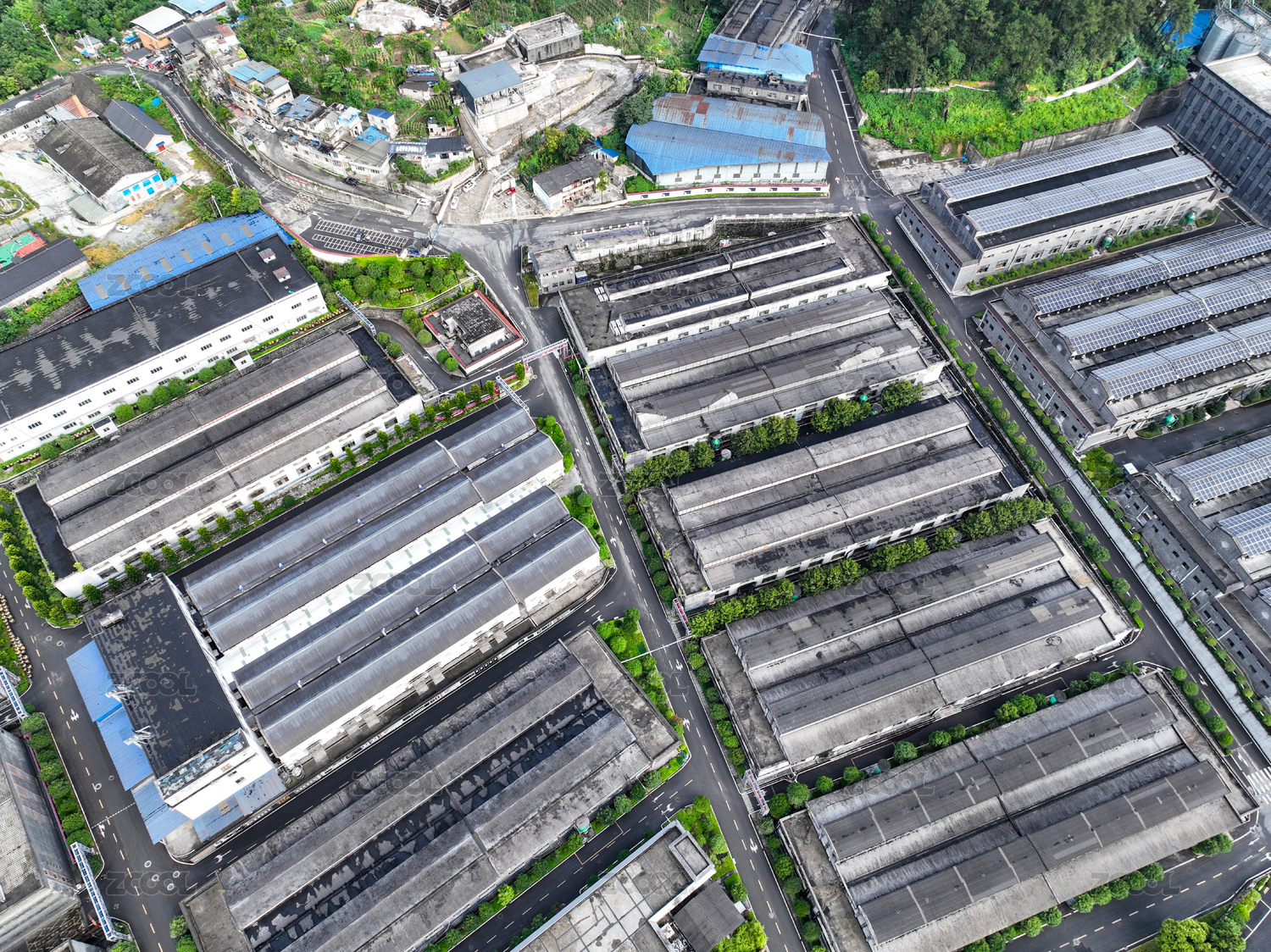 现代化工业厂房鸟瞰图