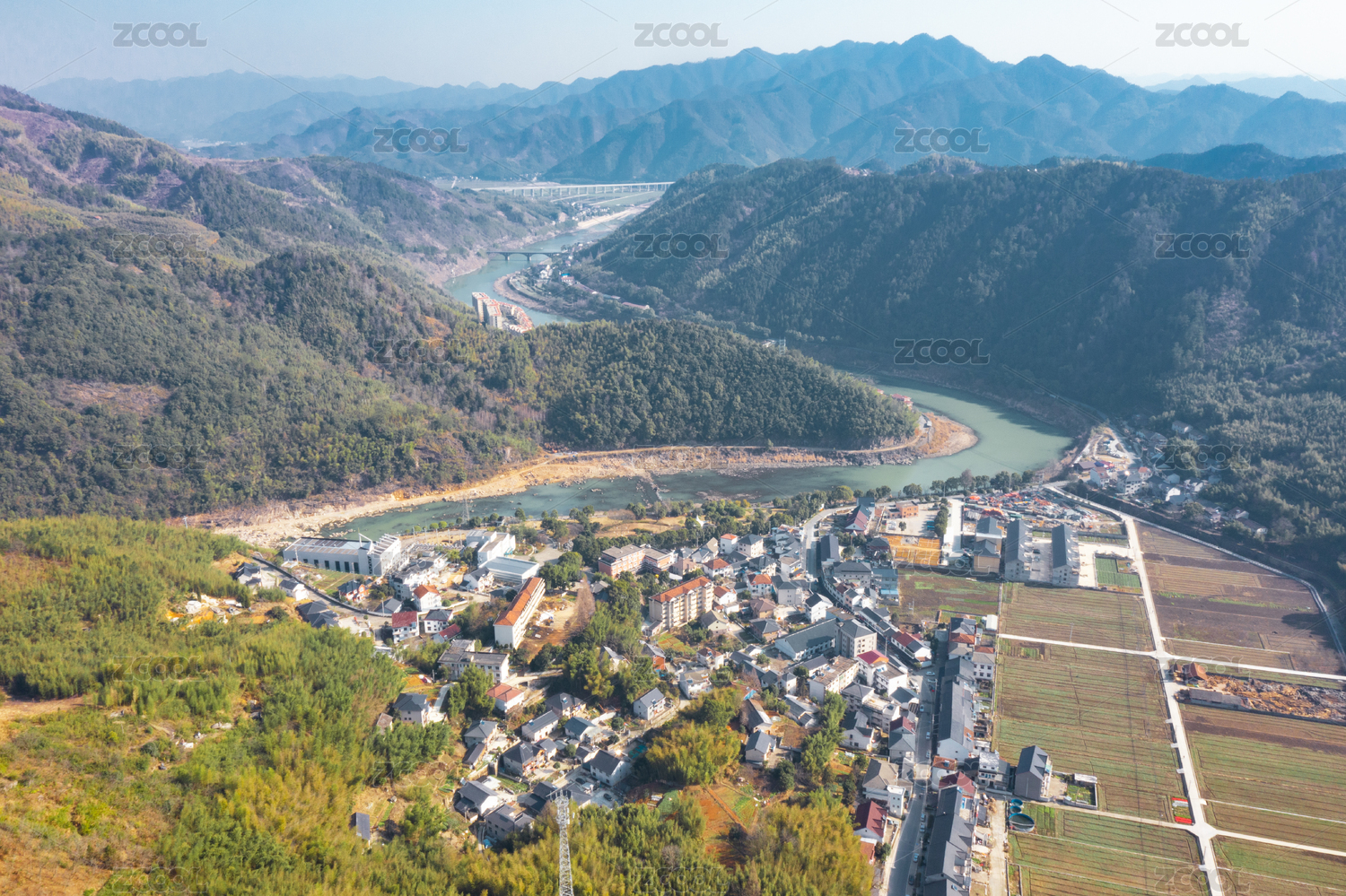 杭州临安山间小镇风光
