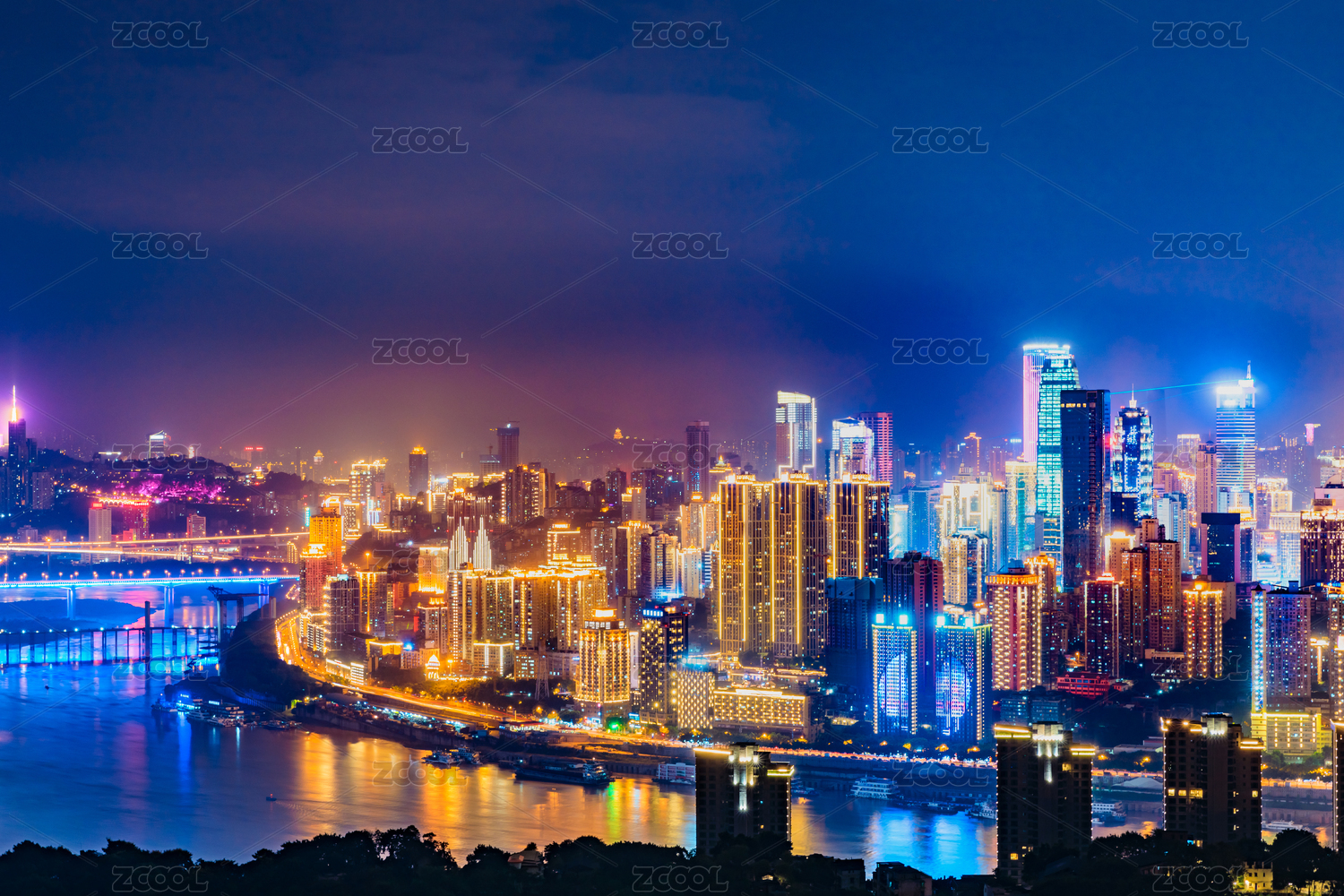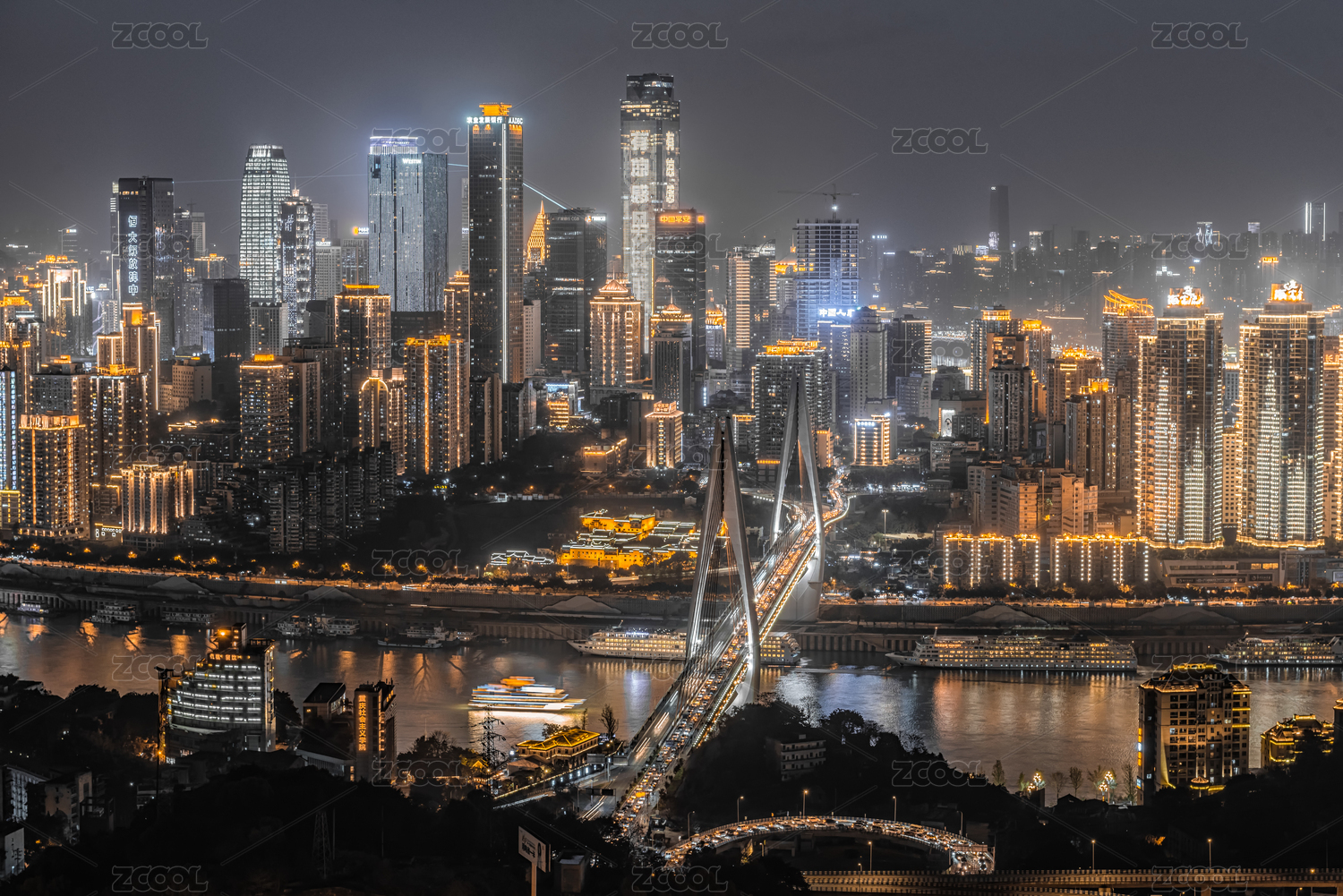 重庆,南山一颗树,城市夜色,日落,长江,嘉临江,桥梁,建筑,交通运输,旅游