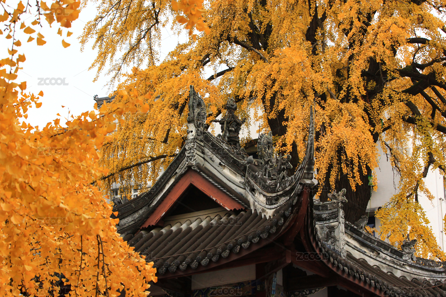 苏州定慧寺银杏树与寺庙建筑屋檐
