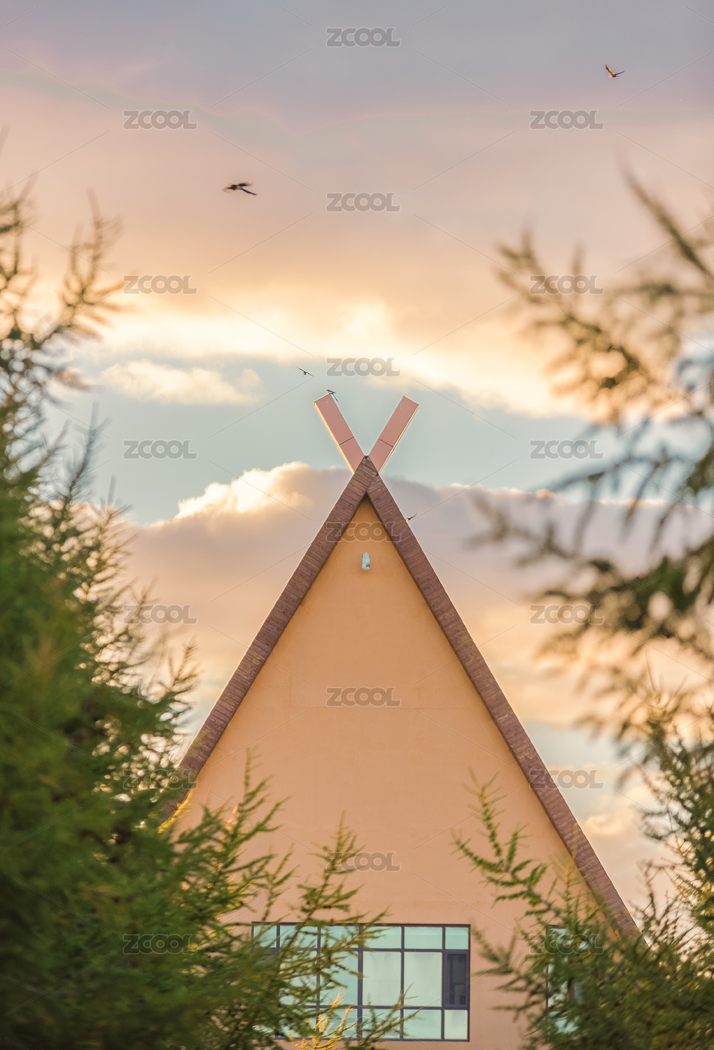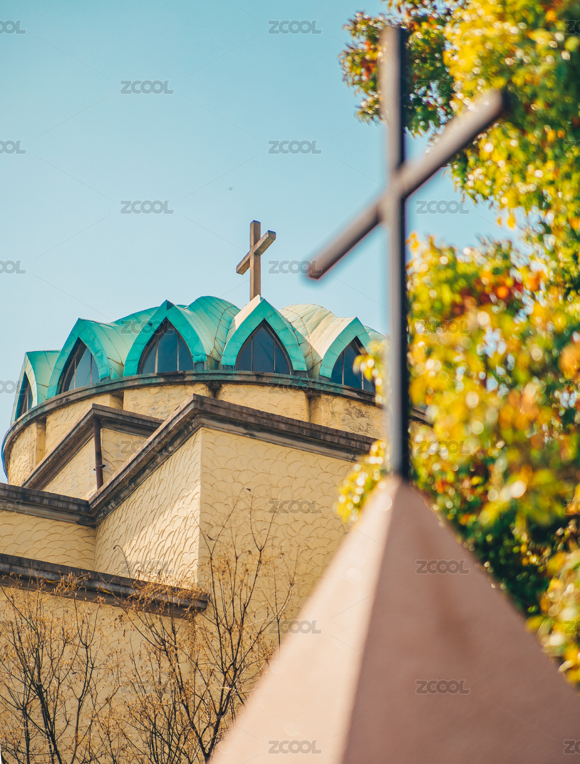 建筑,蓝色,黄色,建筑结构,建筑外部,威海,鸡鸣岛,教堂,简约,礼堂