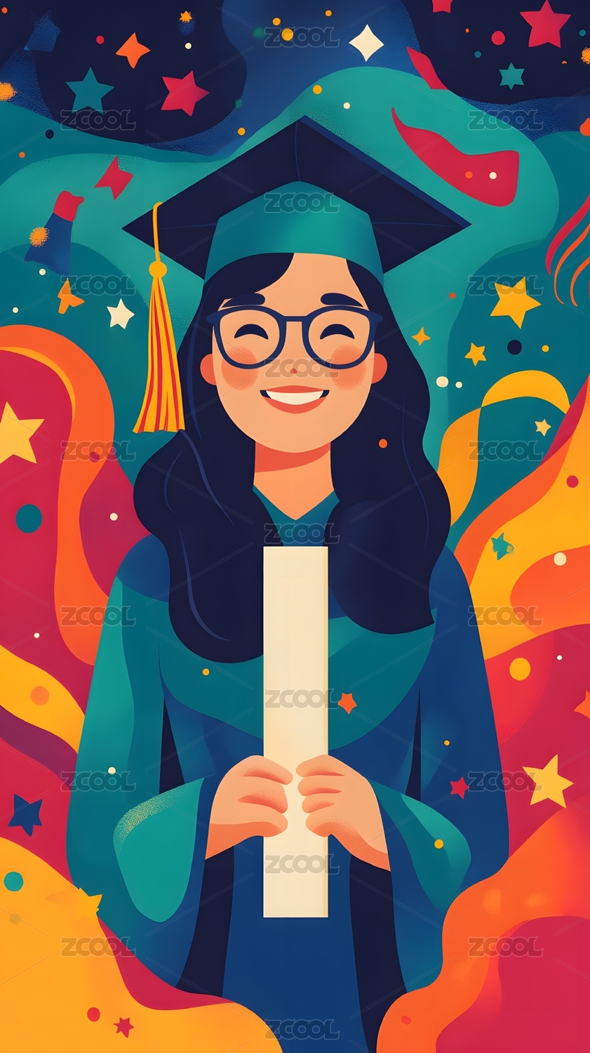 大学生穿着毕业礼服拿着毕业证书微笑庆祝