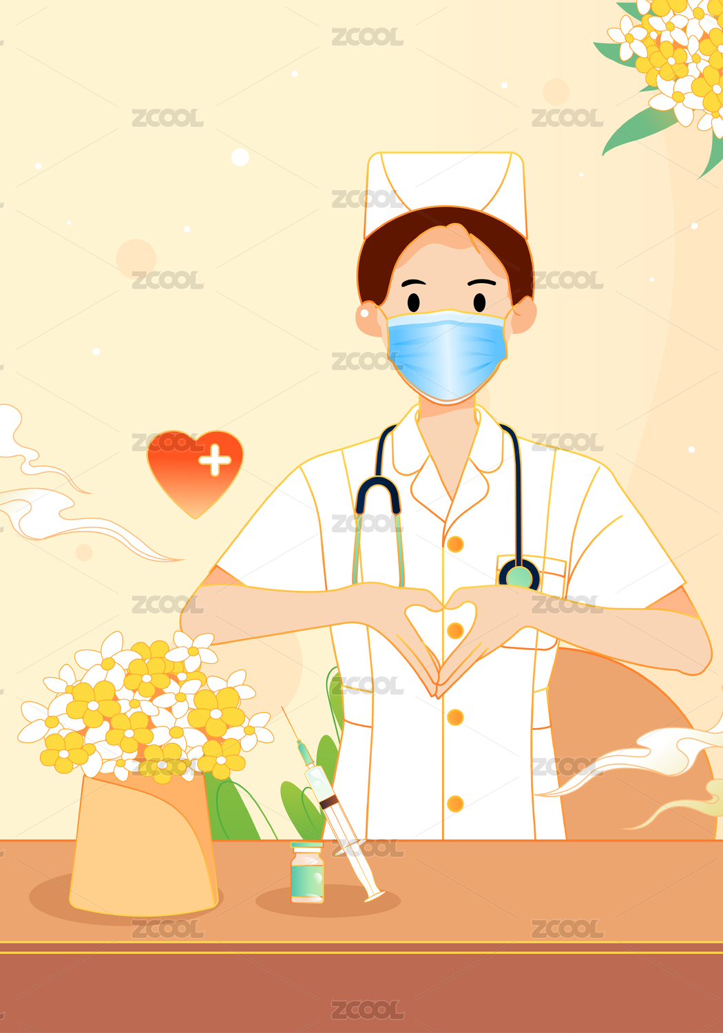 美丽白衣天使庆祝国际护士节医疗爱心插画