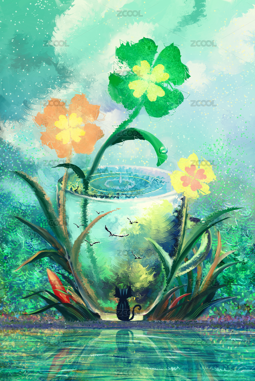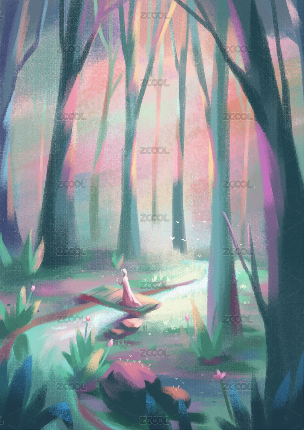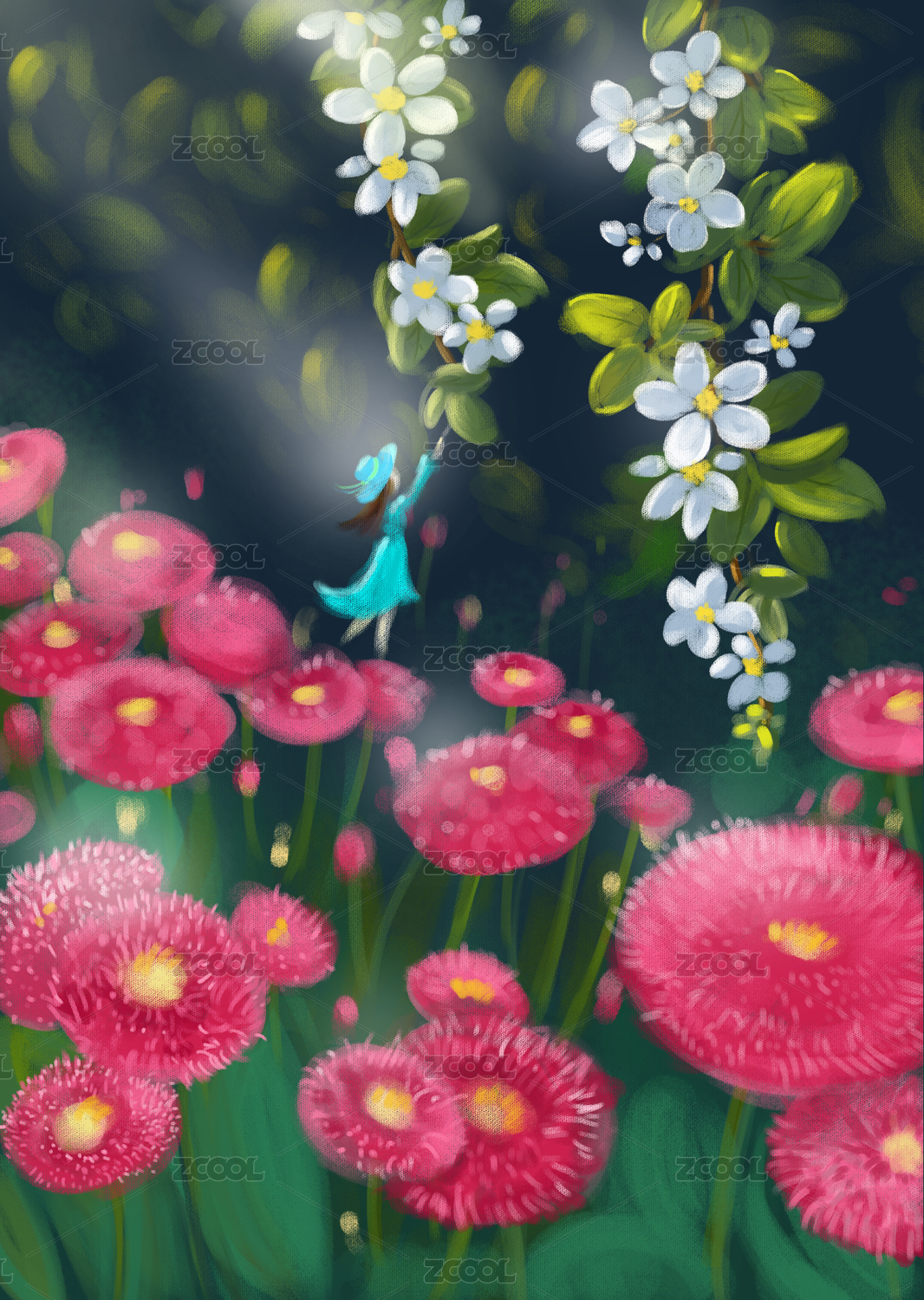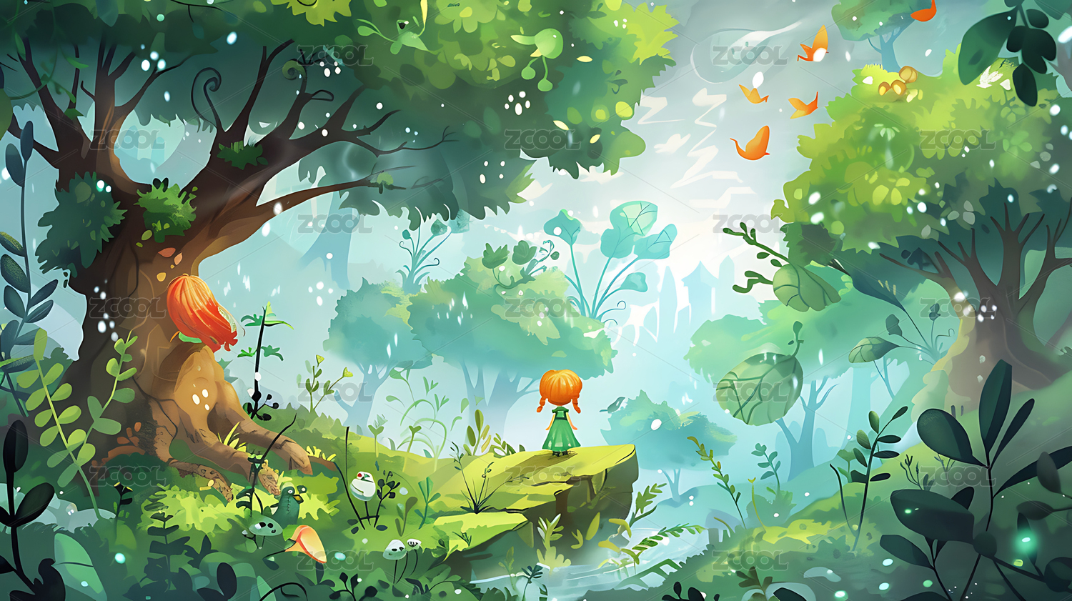 微缩世界中的小精灵在蘑菇丛中游玩-绿景