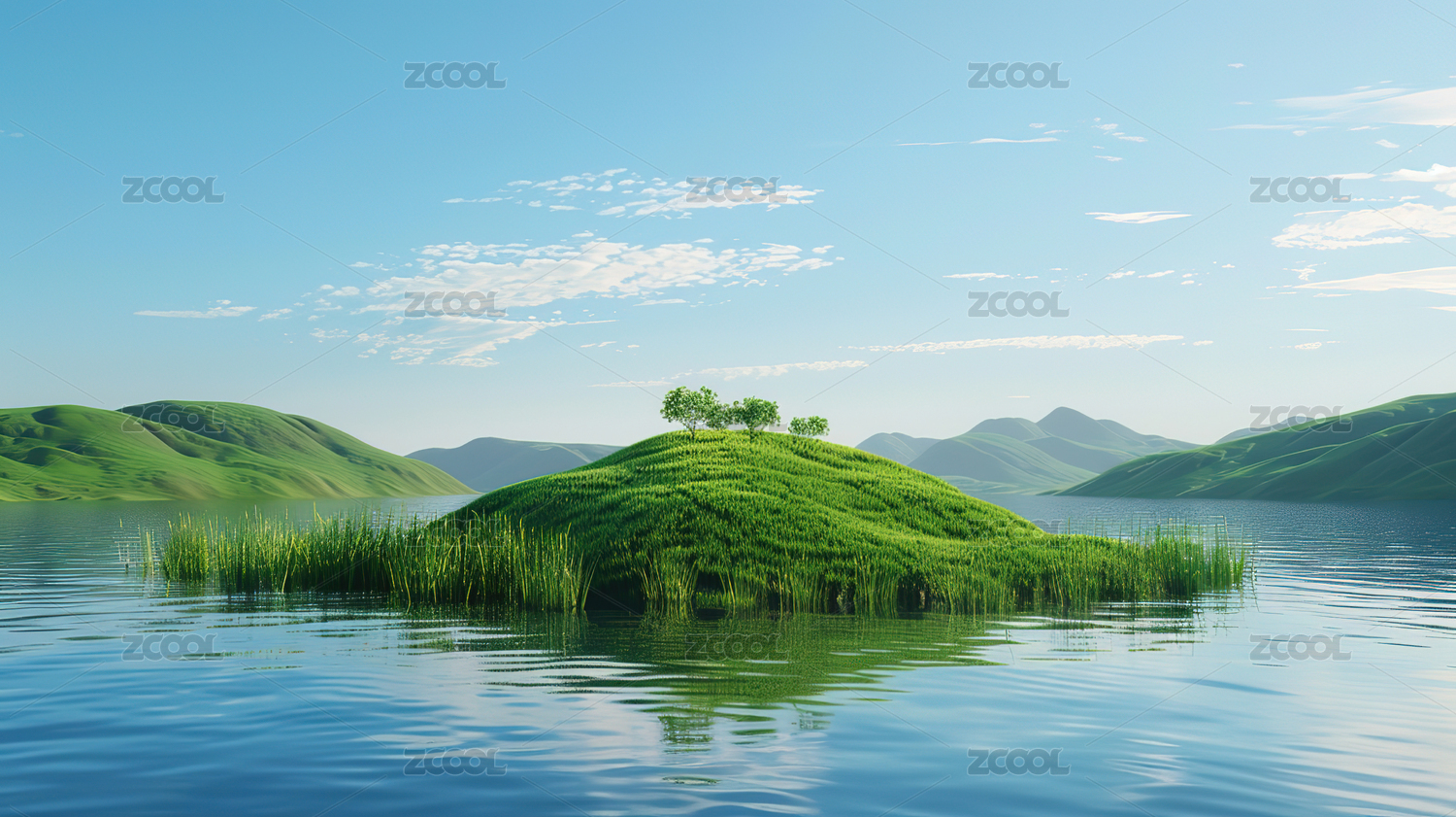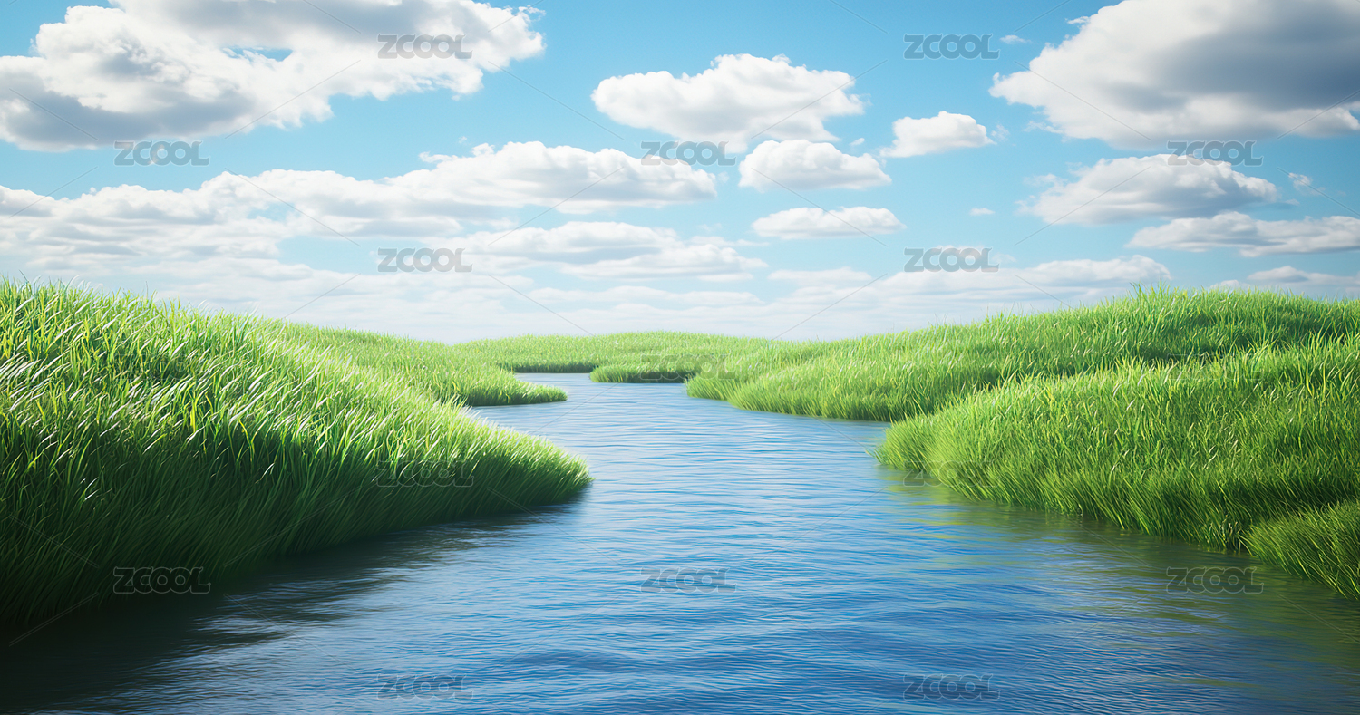 3D,插画,清新,抽象,背景,夏天,夏季,多云,天空,户外