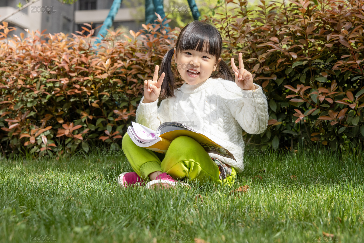 儿童,可爱,小女孩,小孩子,宝宝,户外,自然,草地,绿色,读书