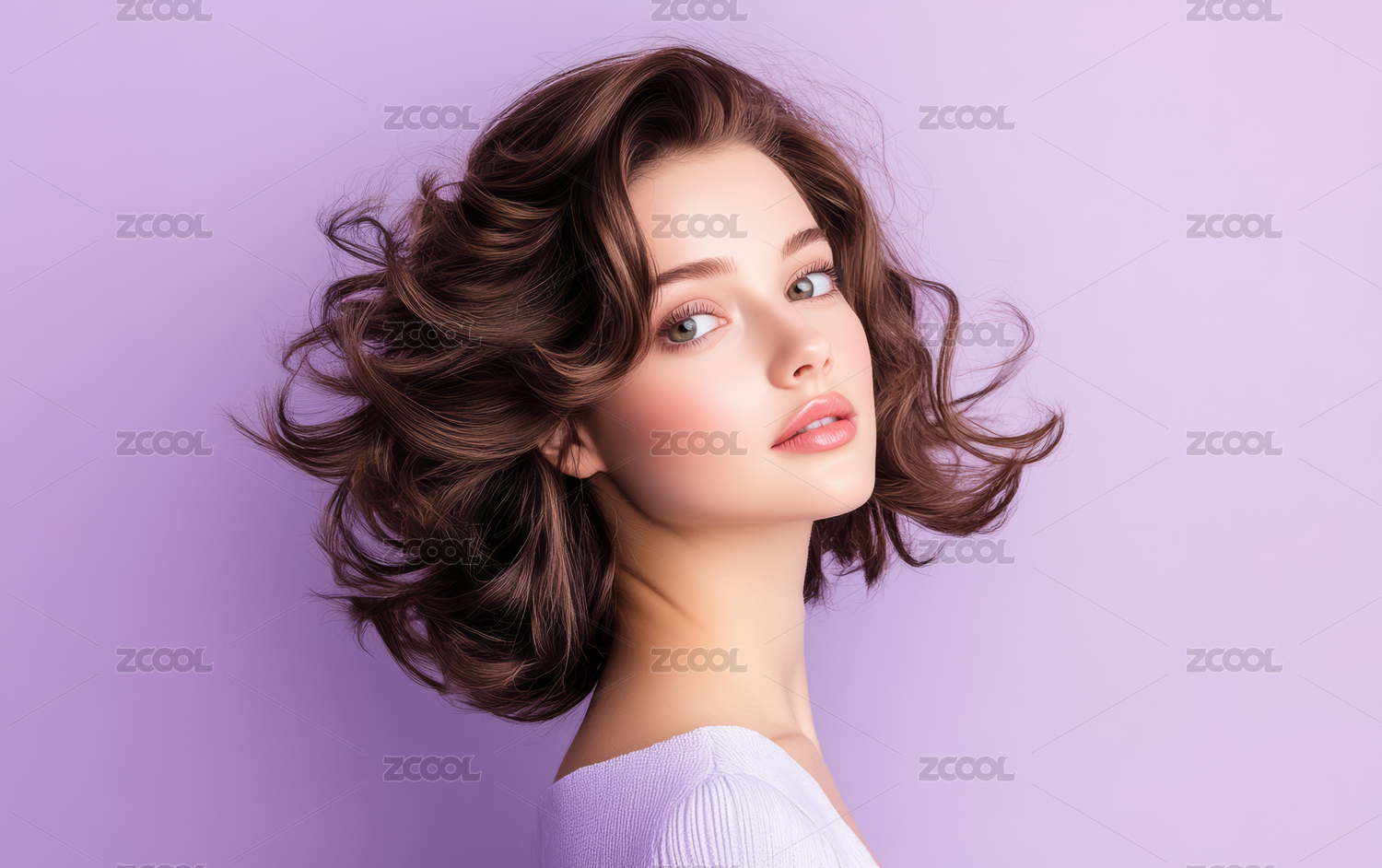 卷发的漂亮欧洲女性肖像
