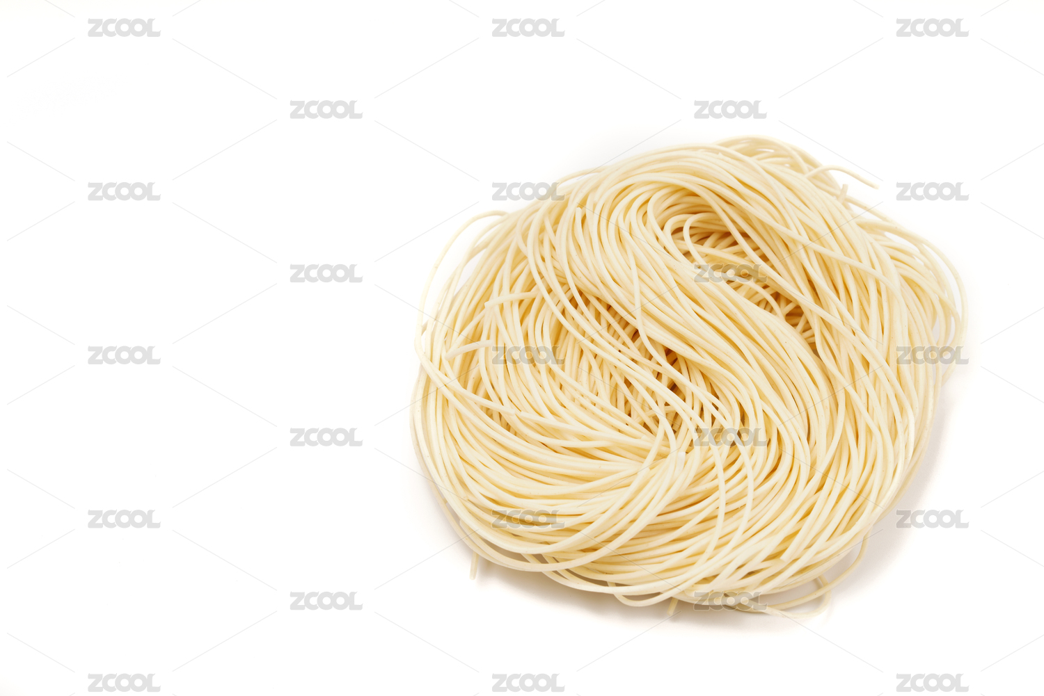 白色背景上摆着的生的鸡蛋面条