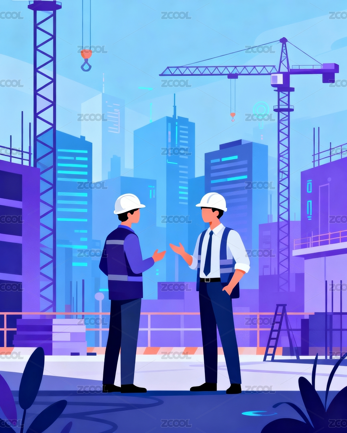 施工工地素材矢量插画