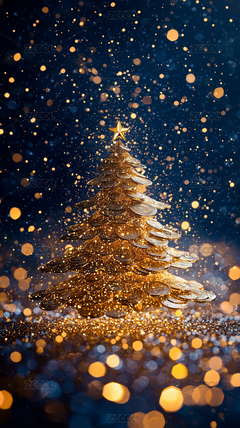 圣诞节,暗色,背景,金色,发光,圣诞树,圣诞,装饰,松树,松花