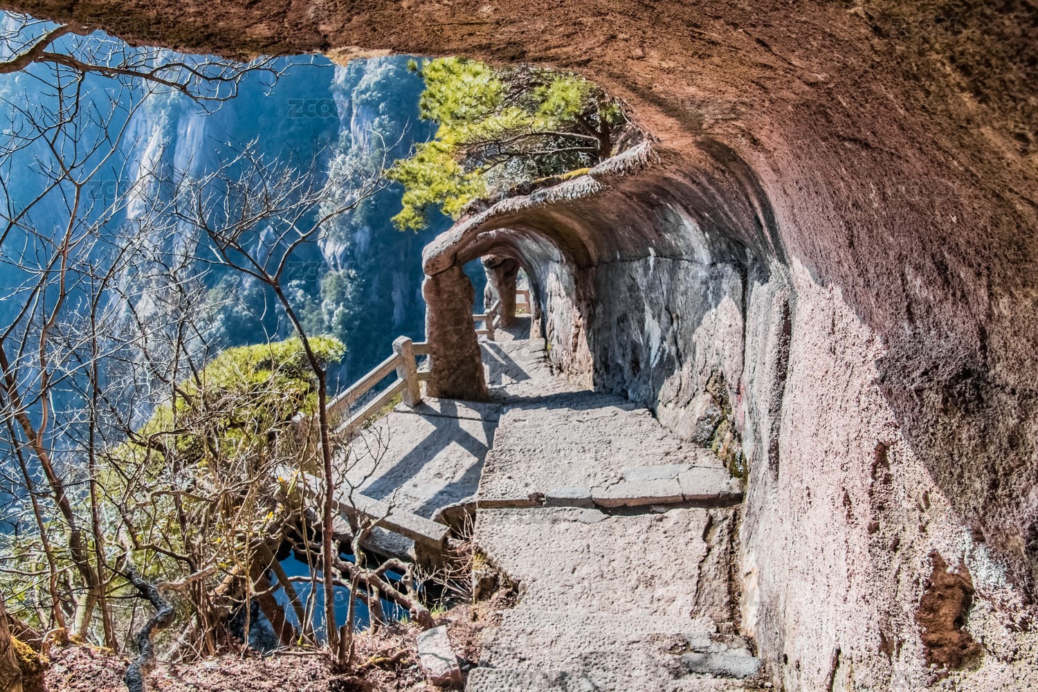 安徽省黄山市黄山风景区步行栈道建筑景观