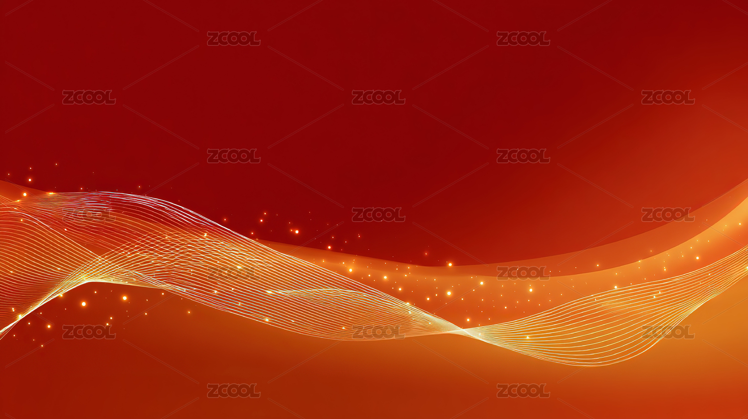 宽幅喜庆发光粒子动感曲线红色丝绸背景