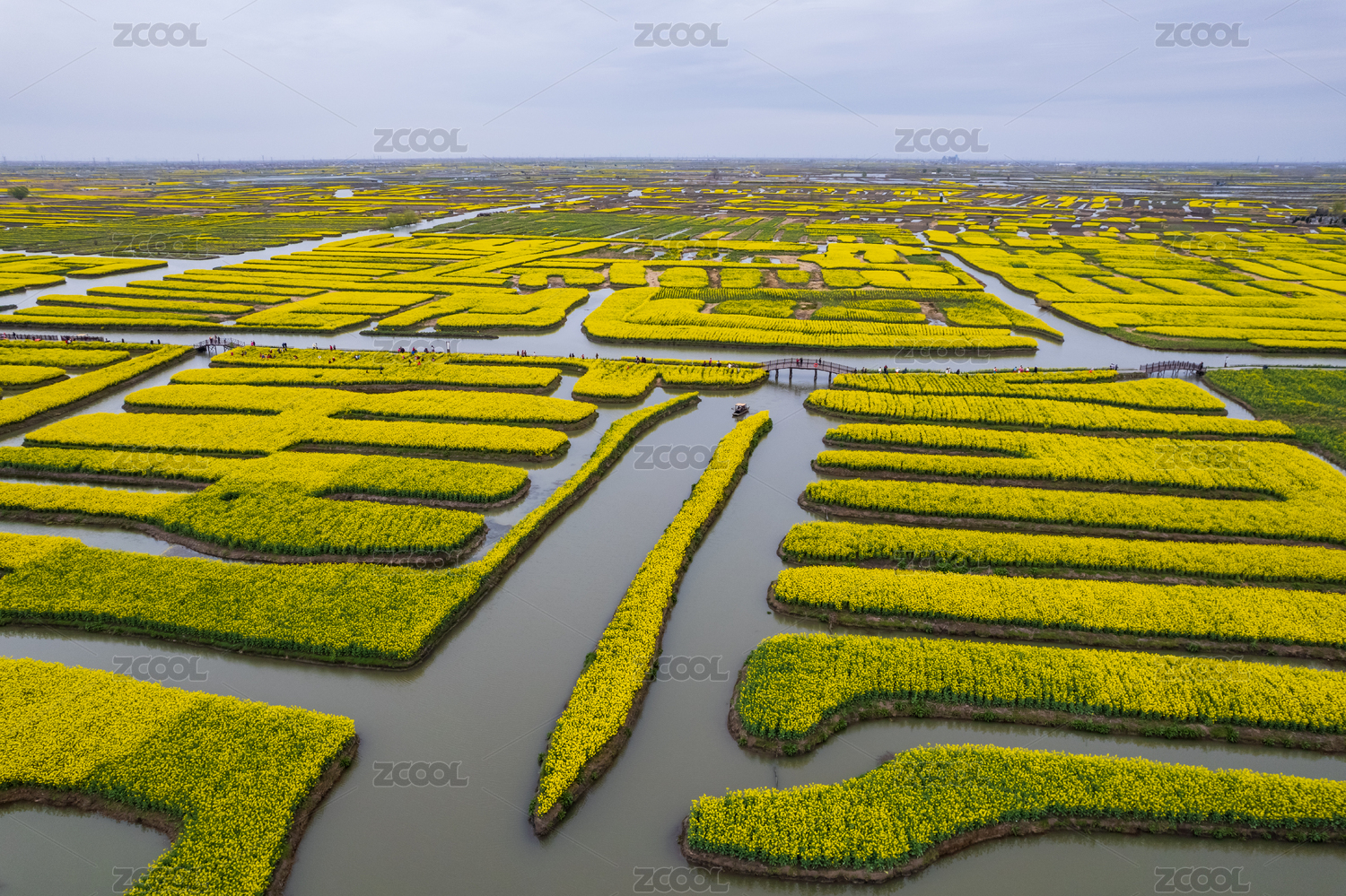 中国江苏泰州兴化千垛景区水上油菜花自然风