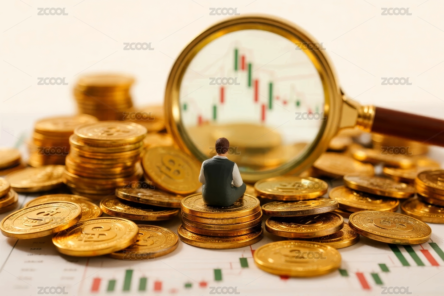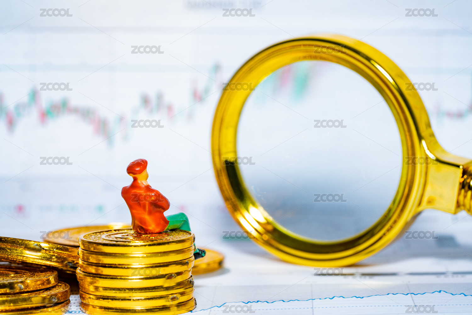 计算,计算器,金融,财经,行情,理财,放大镜,金币,堆砌,小人