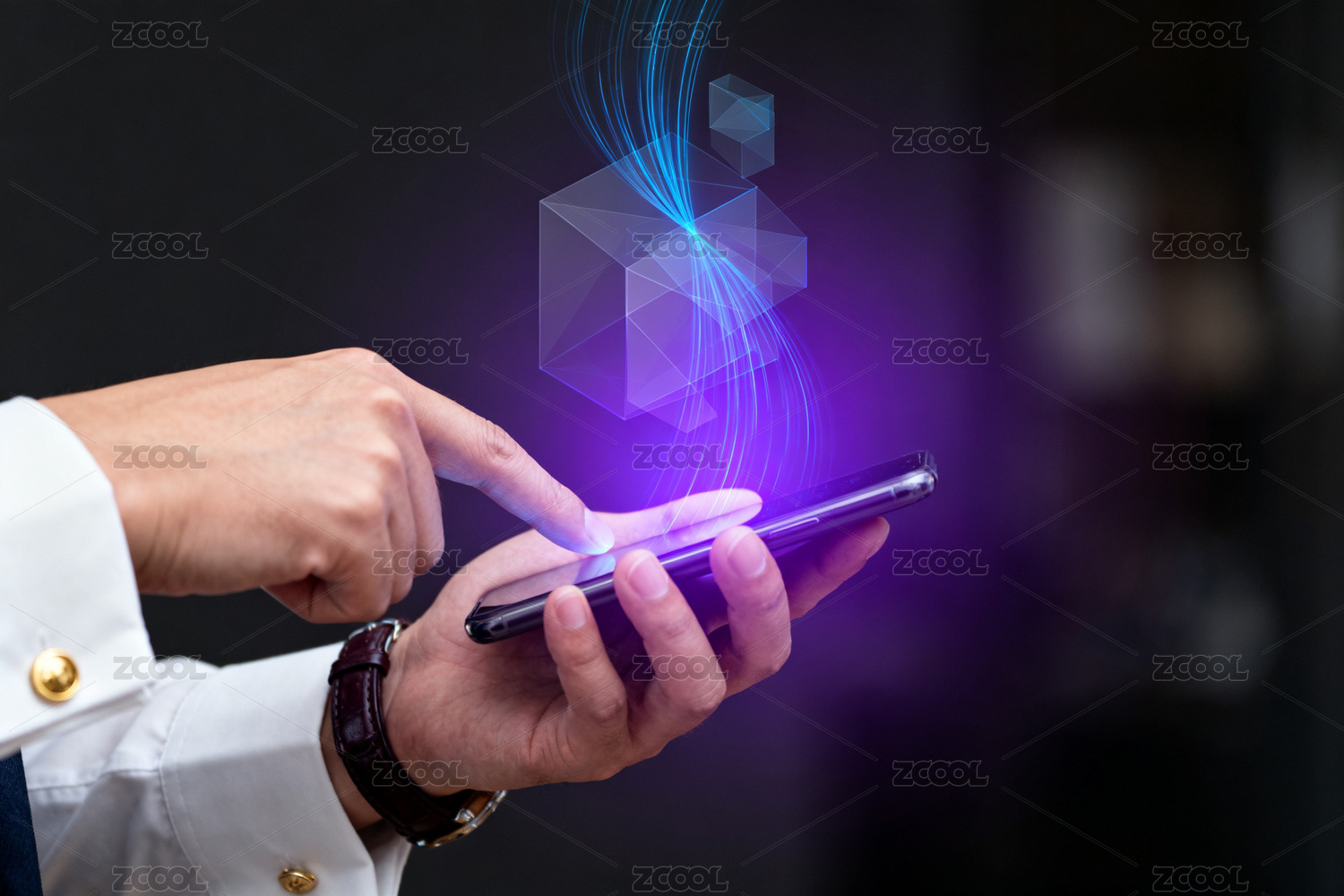 手,手机,全息,投影,光,科技感,科技,美元,金融,经济