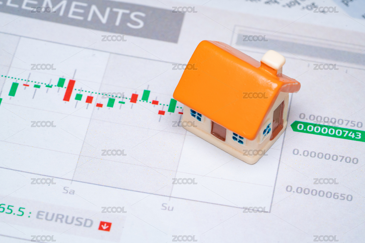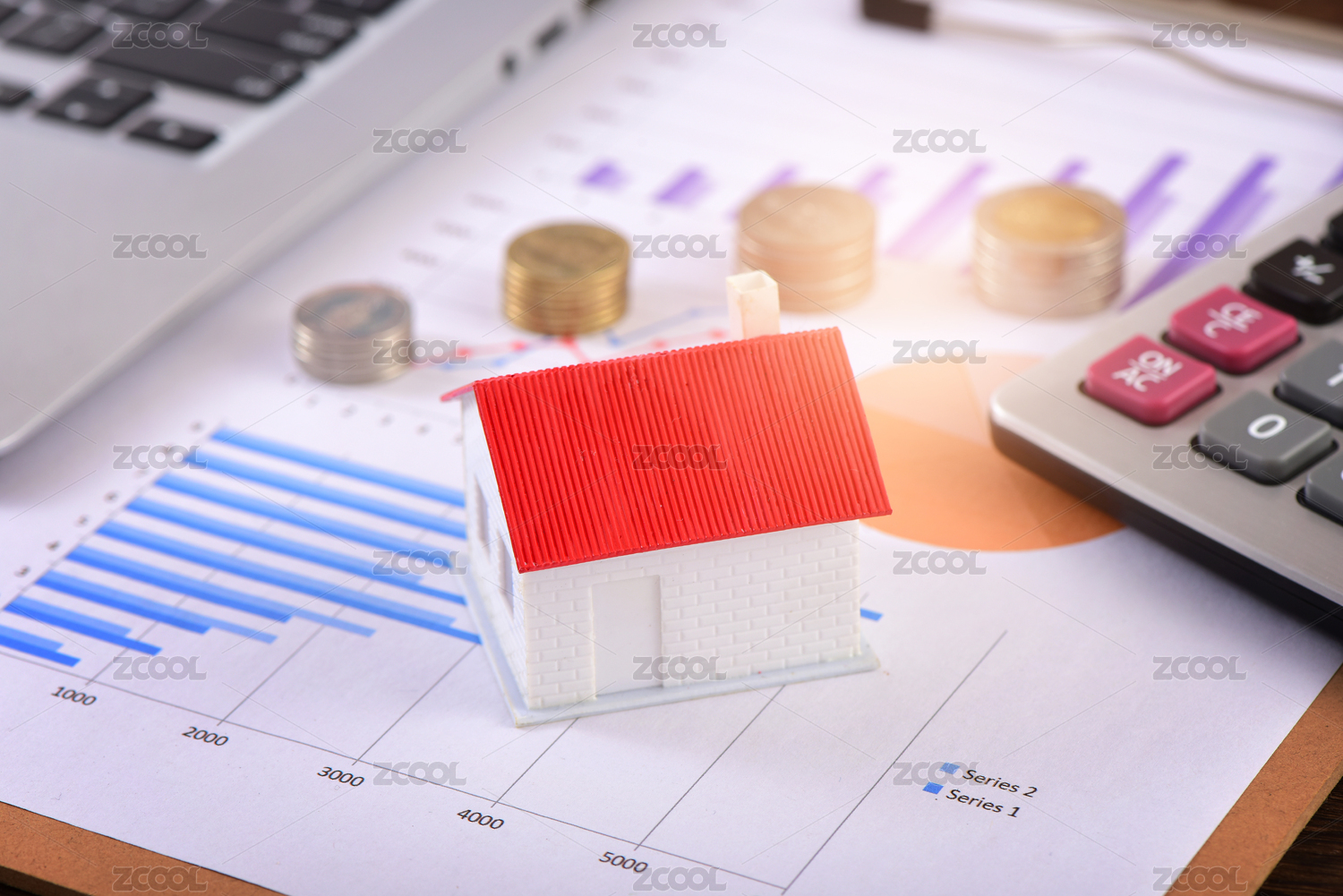 房屋房子金币房价房地产行情小人国微距图表报表概念