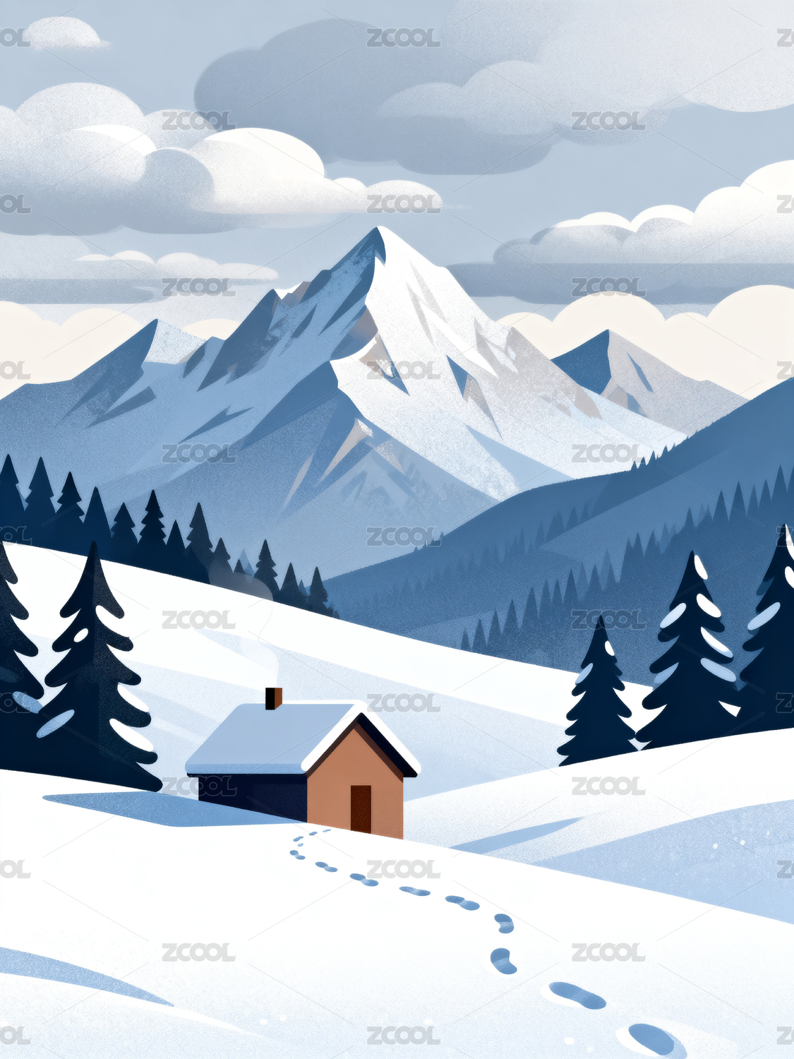 雪景雪山乡村插画
