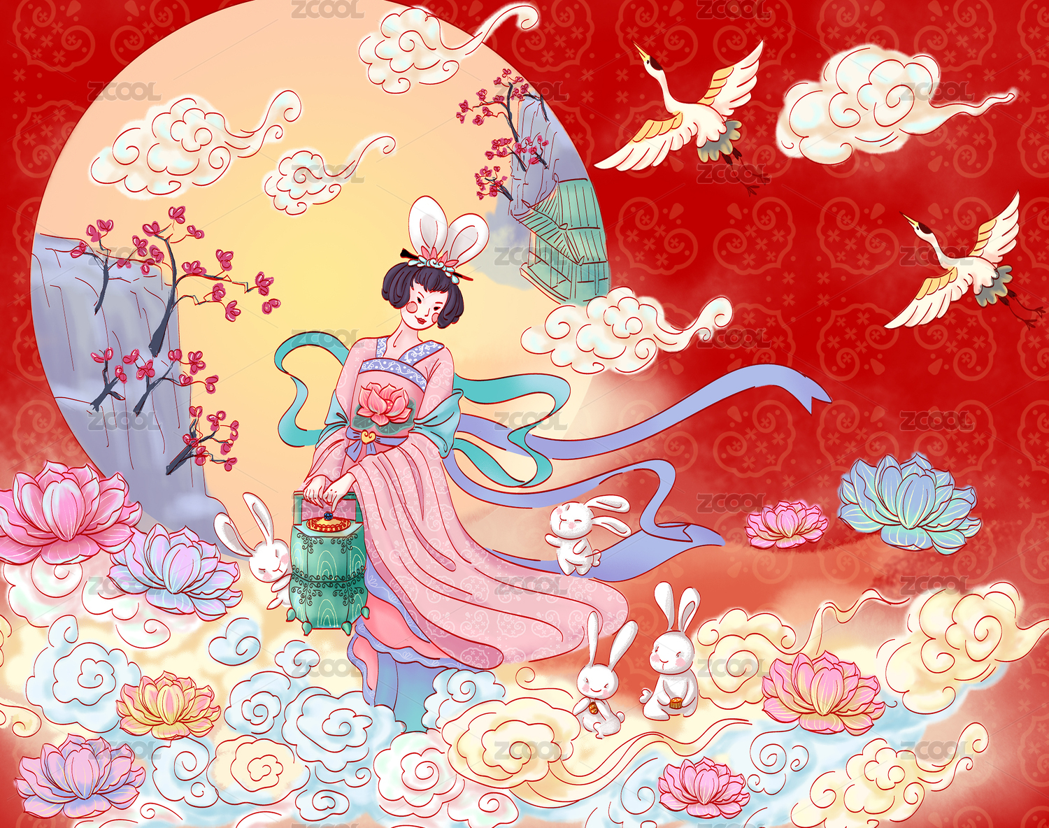 中秋敦煌画风嫦娥飞天古风人物