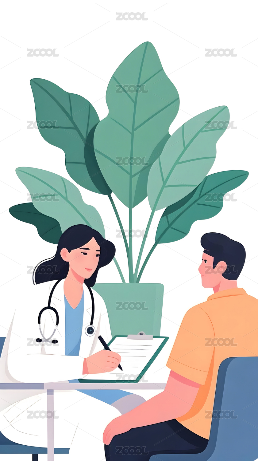 卡通手绘医患关系医生病人询问医疗诊断插画