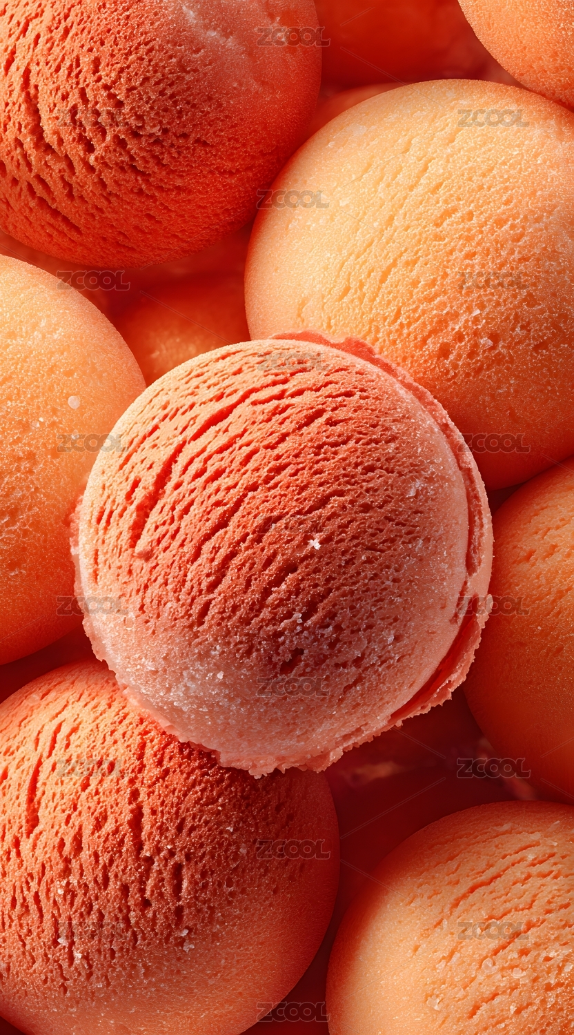 鲜橙色冰淇淋球特写 夏日清凉诱人