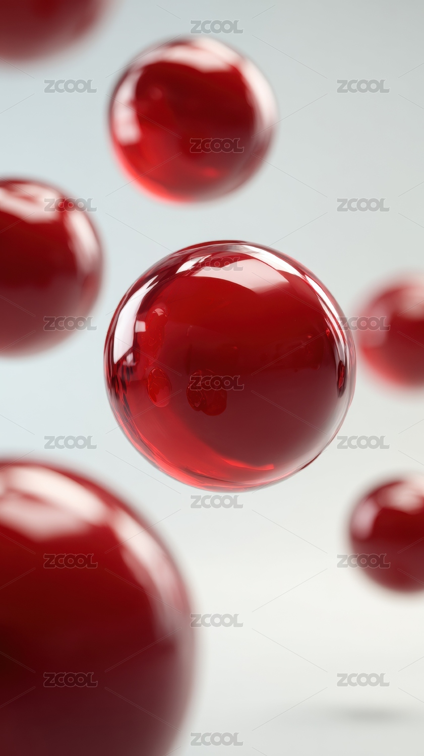 悬浮的红色透明球体