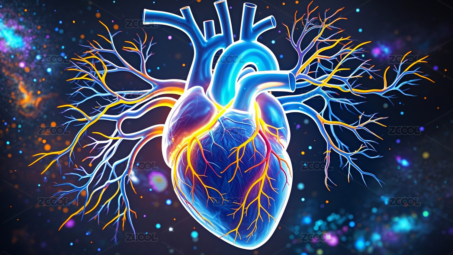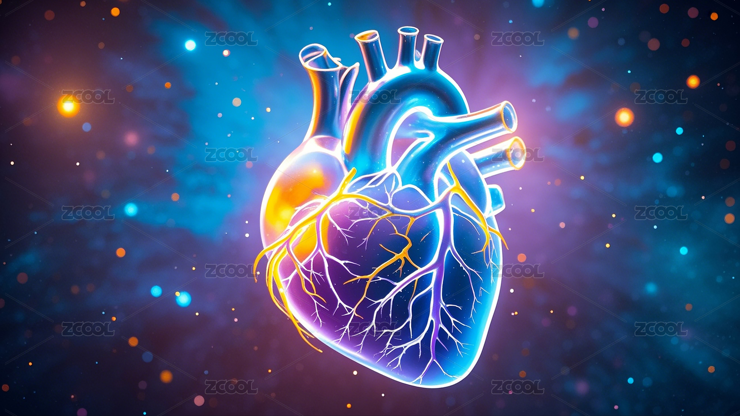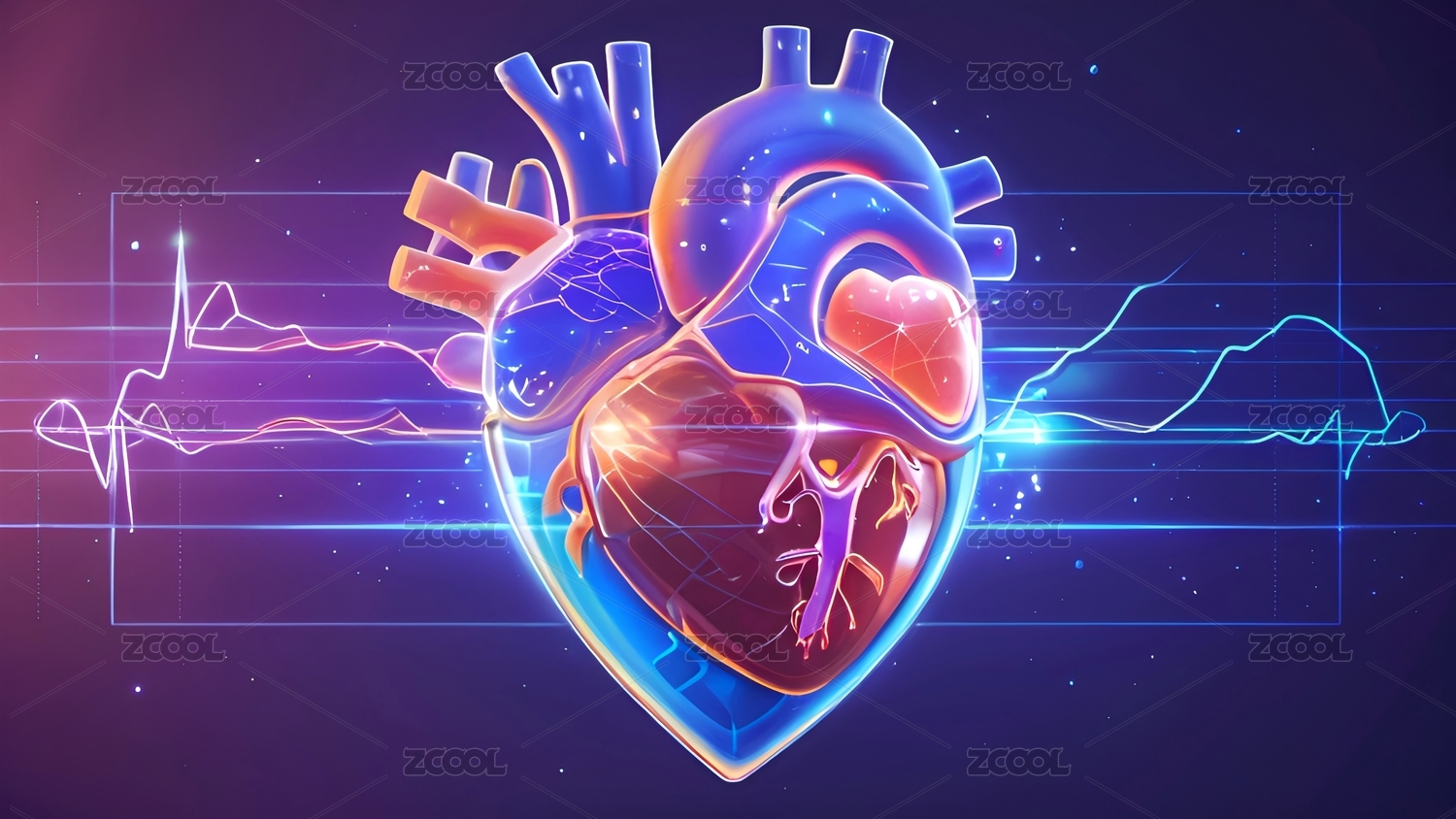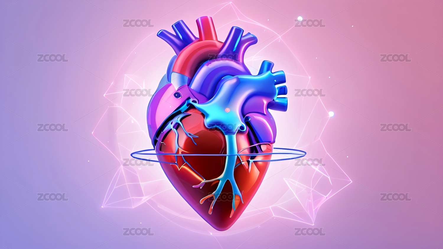 生物医学全息心脏模型平面插图