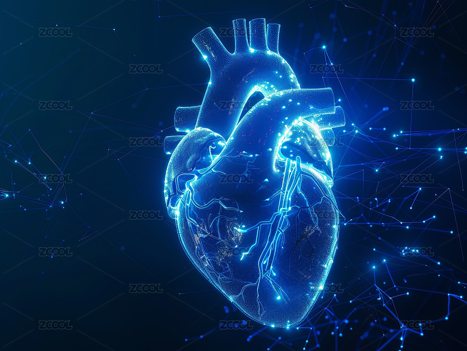 线条科技数字医疗心脏,发光蓝光粒子