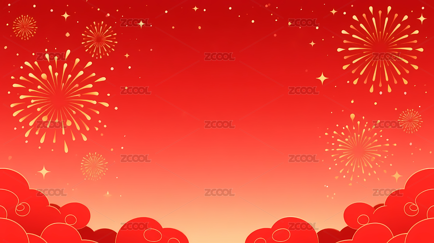 红色烟花喜庆云朵
