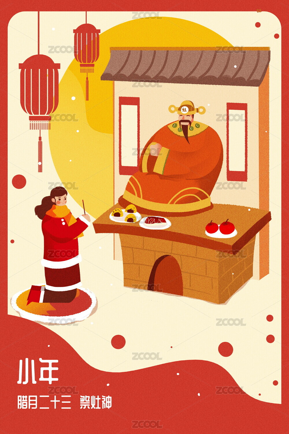 室内放在桌子上的台历在小年这一天上画了个圈 手绘插画
