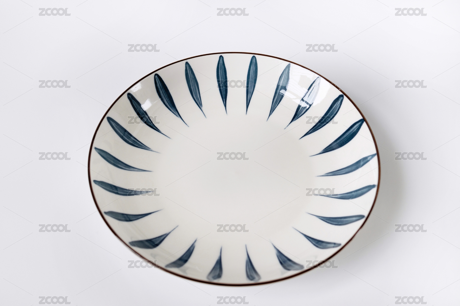 盘子,瓷盘,陶瓷盘子,空盘子,圆盘子,蓝色,一个,白色背景,白底,圆形