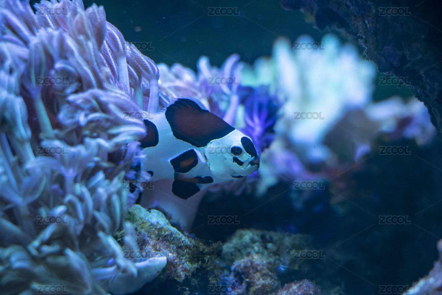花纹奇特,体型小巧可爱的扳机鱼在大海中游动