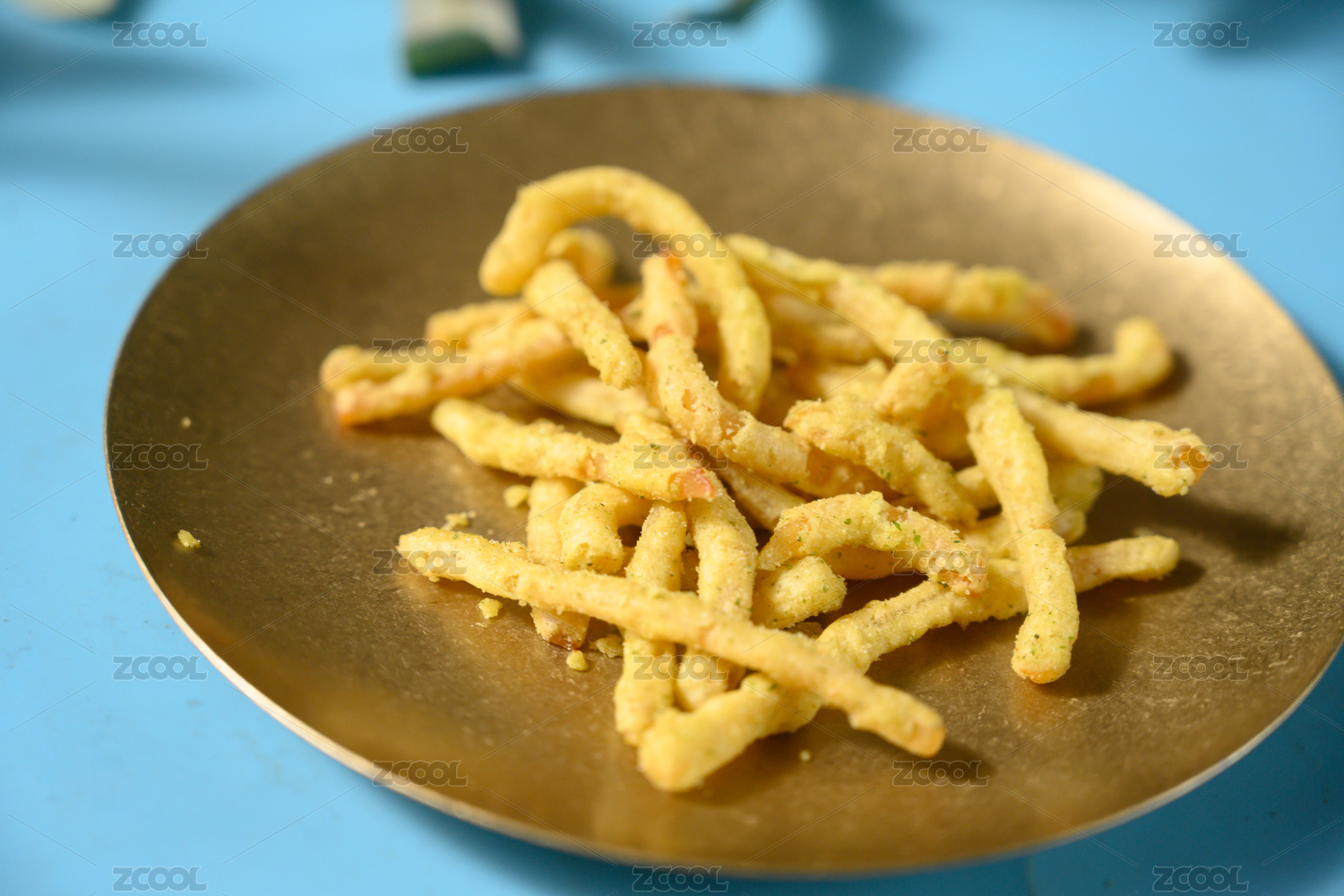 桌面上的盘子里的美味可口的鱿鱼丝