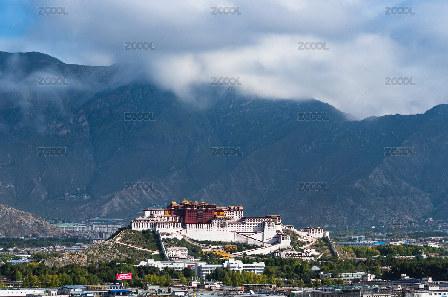 群山环抱下的中国西藏拉萨布达拉宫远景
