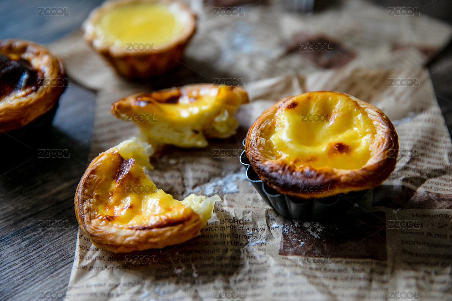 木板上的蛋挞
