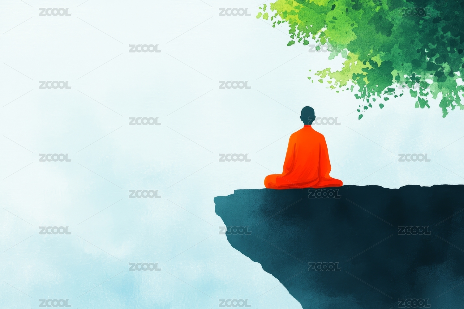 菩提树中国传统文化禅宗罗汉人物插画水墨文