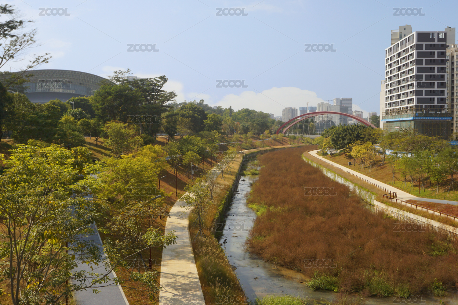 中国广东深圳西丽镇茶光村大沙河沿岸风光