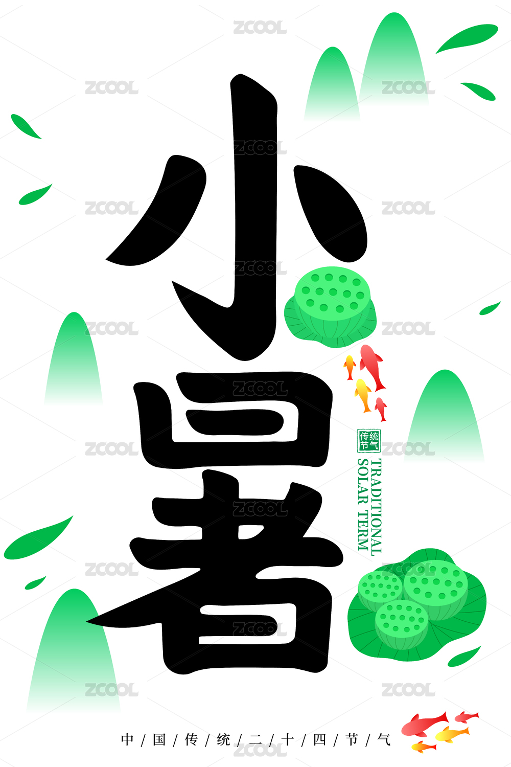 绿色清新荷叶莲蓬锦鲤小暑海报