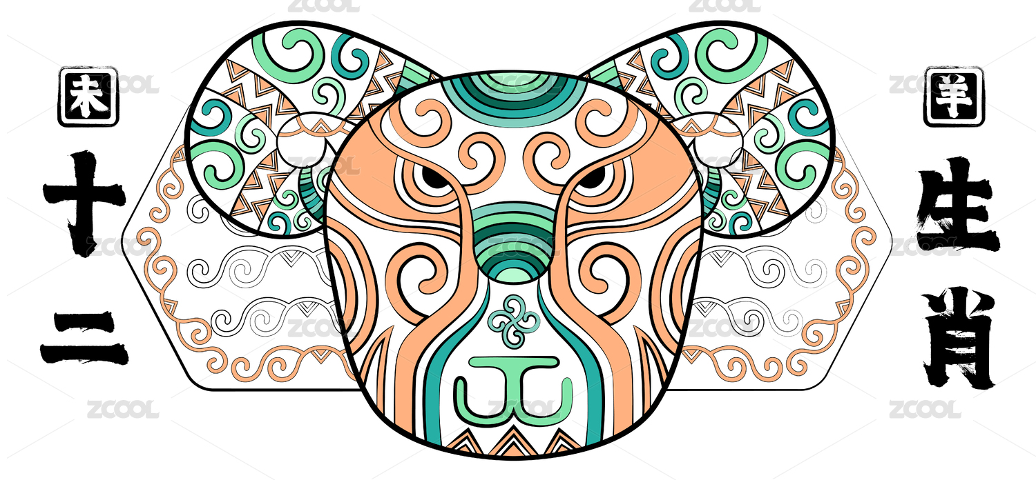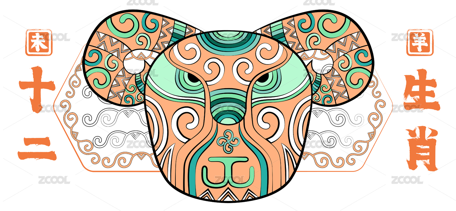 未羊十二生肖潮流印花图案传统纹样矢量插画