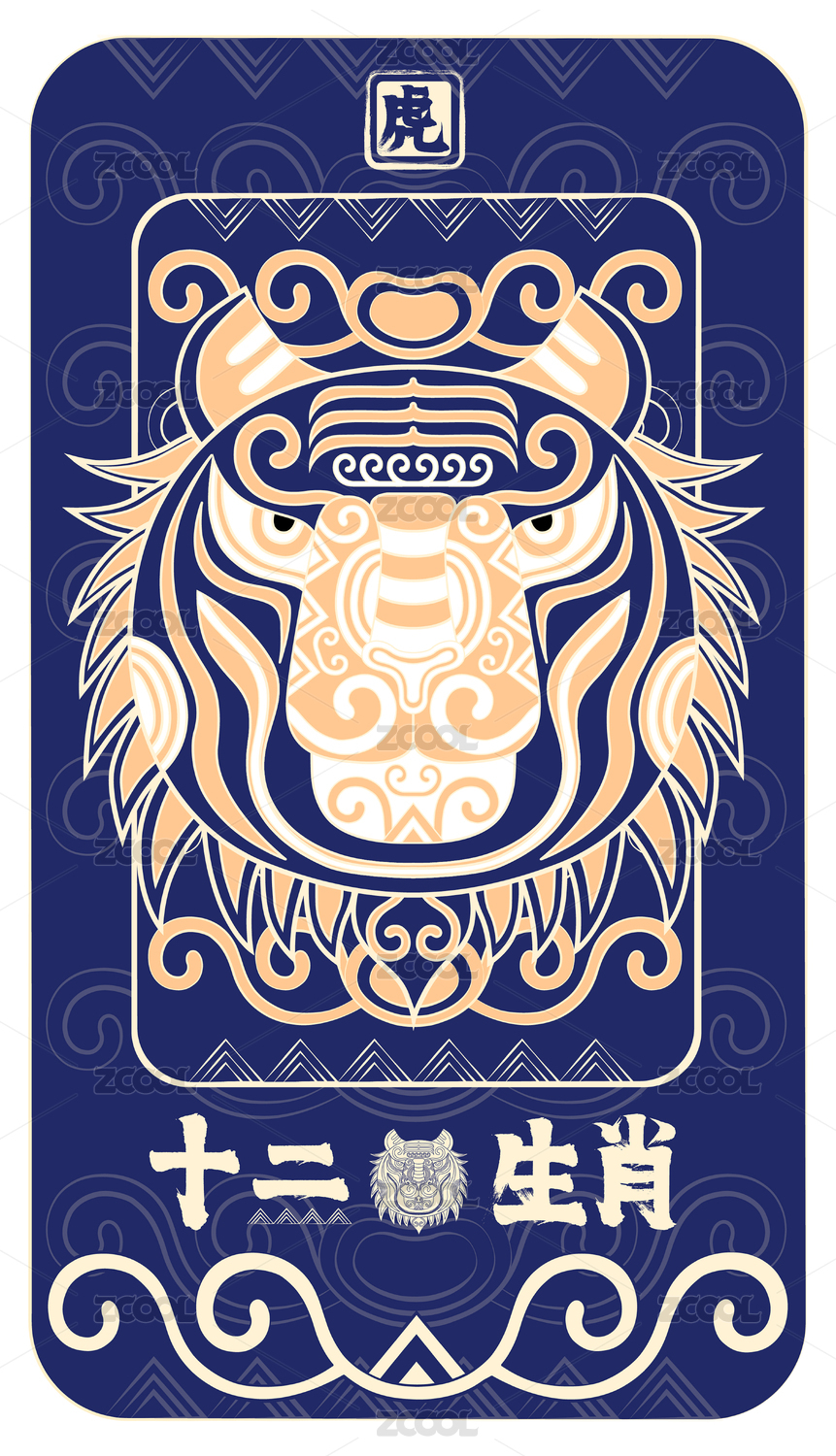 寅虎十二生肖潮流印花图案传统纹样矢量插画