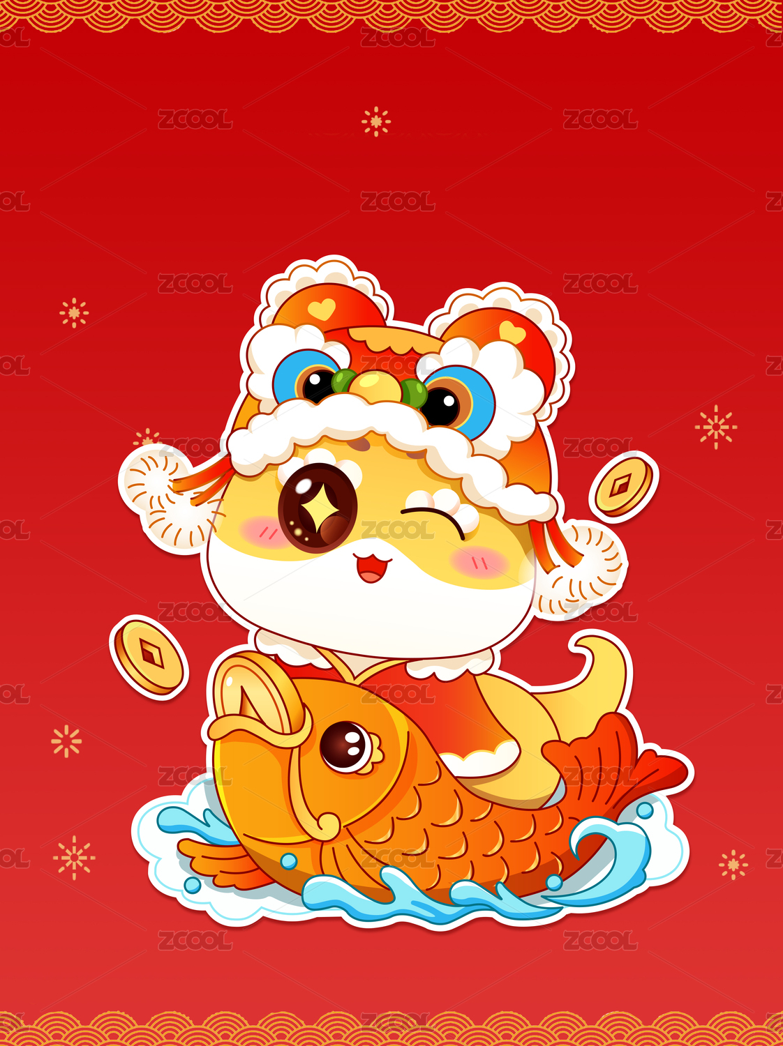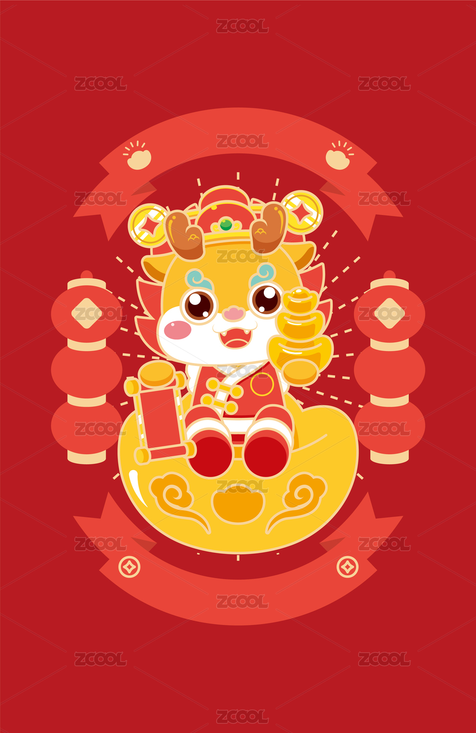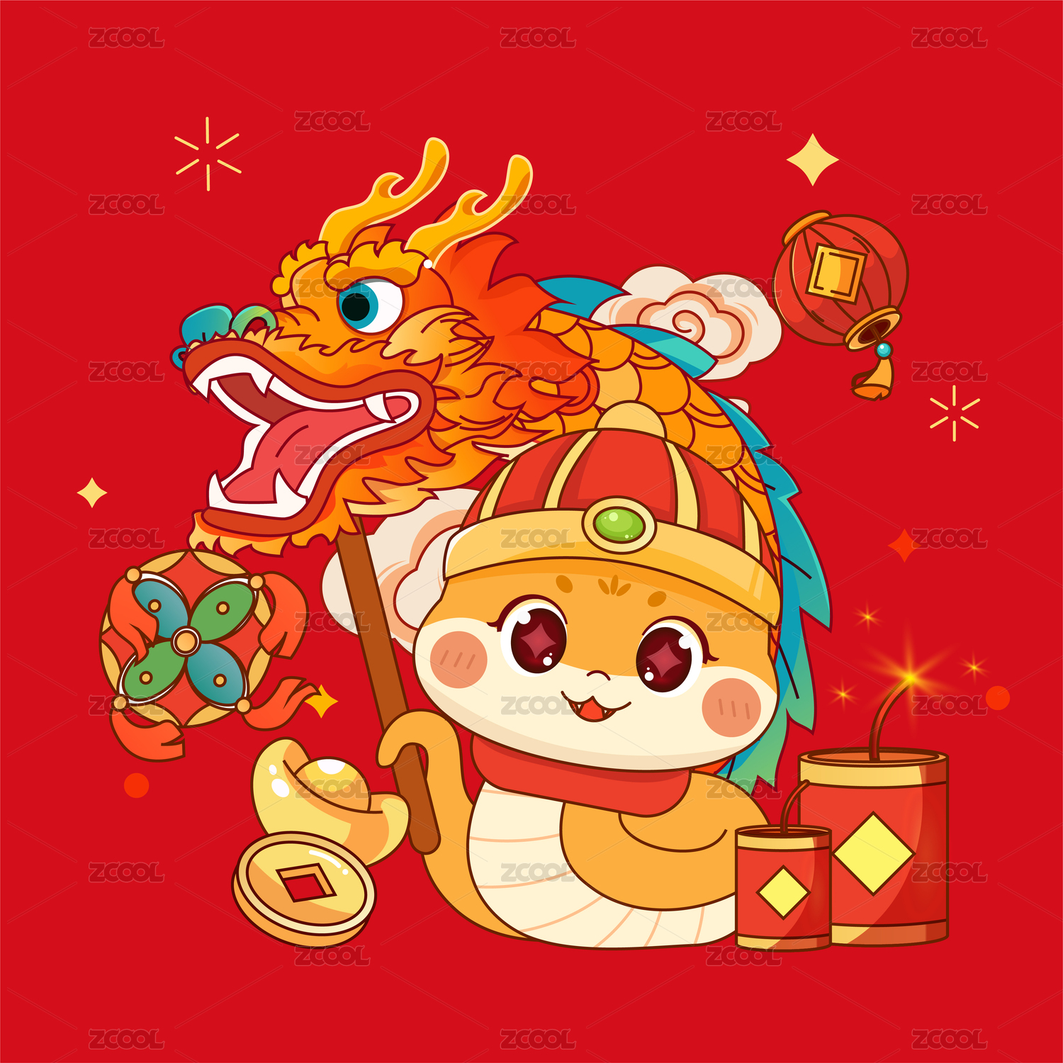 蛇年春节新年可爱卡通形象国潮矢量插画海报