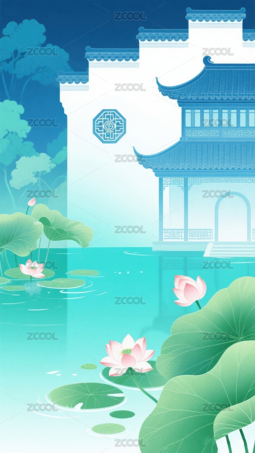 中式园林插画背景
